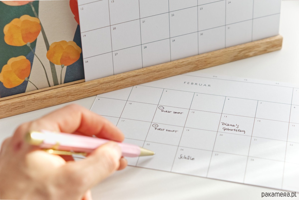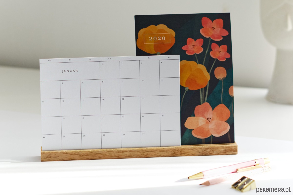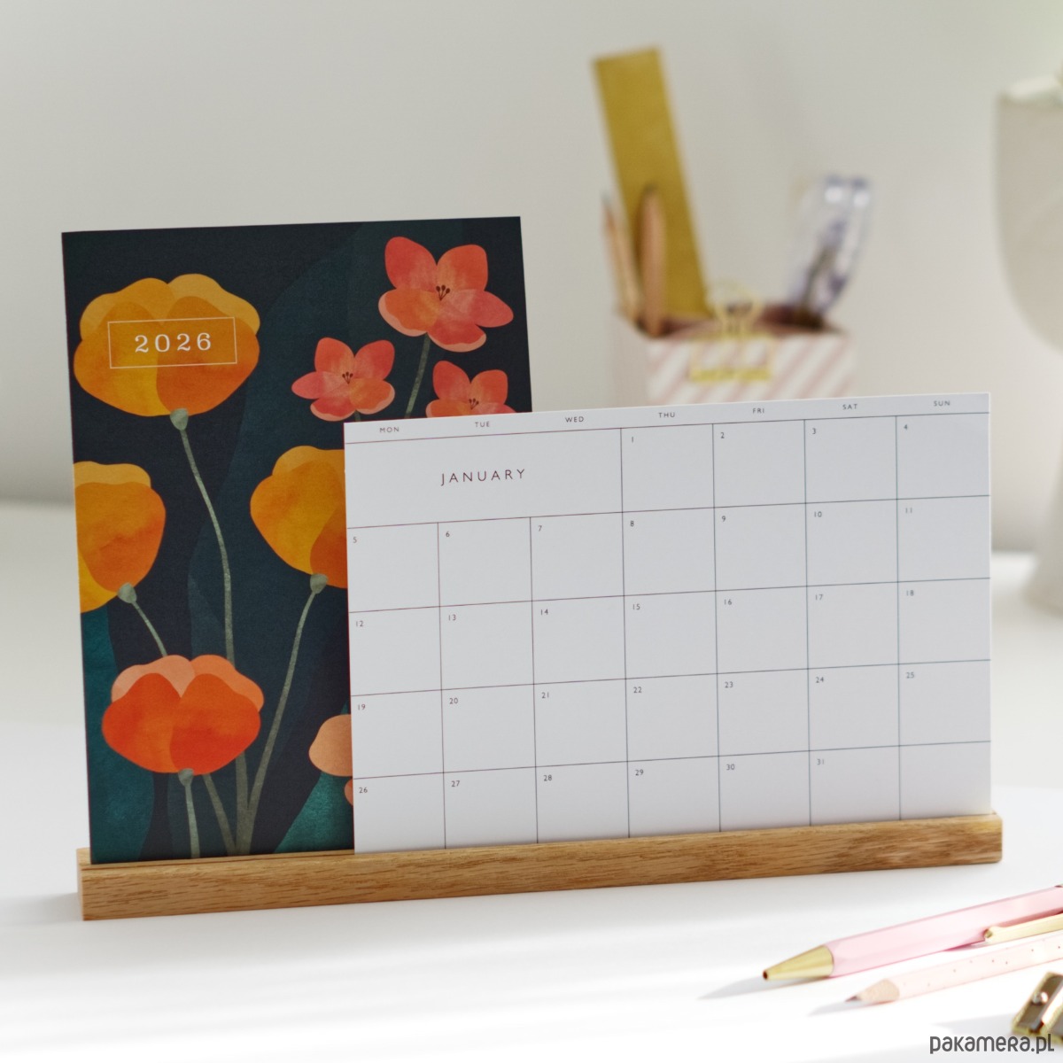 Ten miesięczny planer w formacie A5 zawiera 6 dwustronnych kart premium (300 gsm) — po jednym miesiącu na każdej stronie. Każda minimalistyczna strona kalendarza oferuje miejsce na codzienne notatki, wydarzenia, święta i urodziny, z całym miesiącem na jednej stronie.Dodatkowa karta A5 z ilustracją botaniczną i rocznym kalendarzem na 2026 rok dodaje stylowego akcentu i pomaga ogarnąć cały rok w jednym miejscu.Kalendarz jest wyposażony w solidną podstawkę z naturalnego dębu — piękną, stabilną i wielokrotnego użytku. Możesz postawić ją na biurku lub zawiesić na ścianie dzięki dyskretnym otworom montażowym z tyłu. Idealny do nowoczesnego miejsca pracy, domowego biura lub jako przemyślany prezent dla miłośników planowania i minimalizmu.Szczegóły:6 dwustronnych kart A5