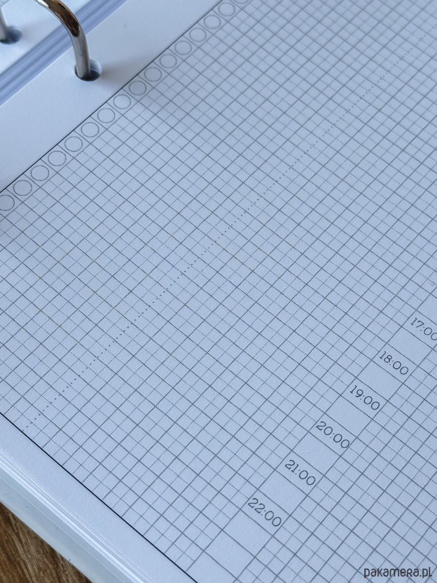 Kolumna z godzinami służy na zadania, które są przypisane do odpowiedniego czasu. Można je notować od razu lub dopiero w momencie szczegółowego planowania dnia przenosząc zadania z kolumny głównej.