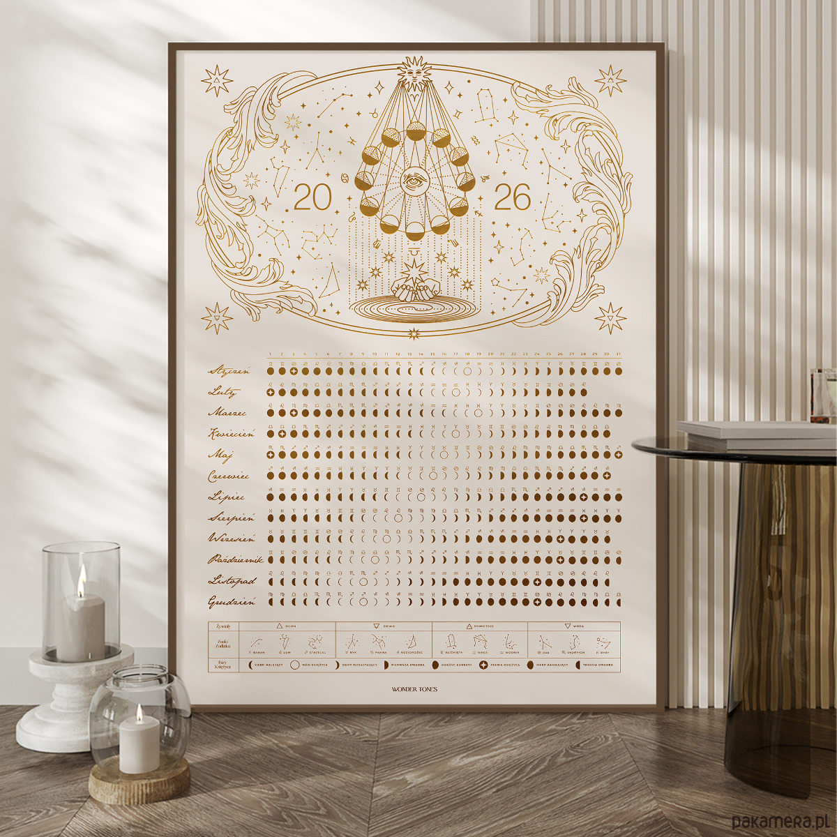 Astrologiczny kalendarz faz księżyca 2026- Plakat w formacie: 50x70 cm