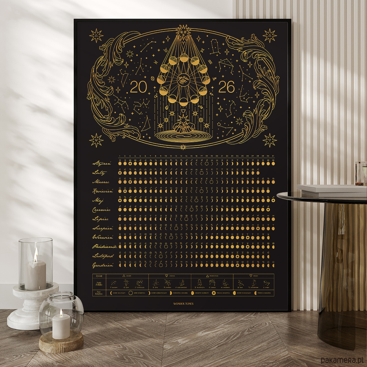Astrologiczny kalendarz faz księżyca 2026- Plakat w formacie: 50x70 cm