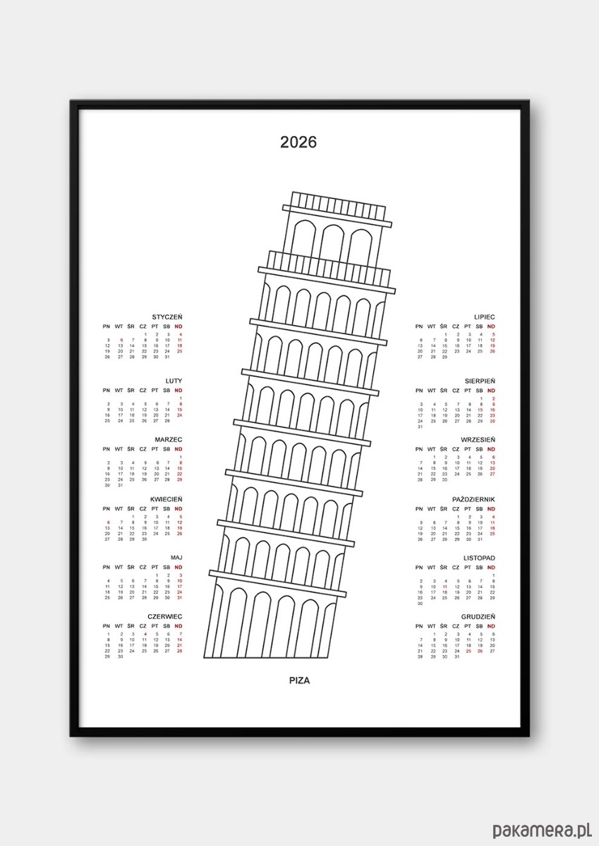Elegancki kalendarz ścienny 2026 z wizerunkiem Pizy to harmonijne połączenie funkcjonalności i sztuki użytkowej.