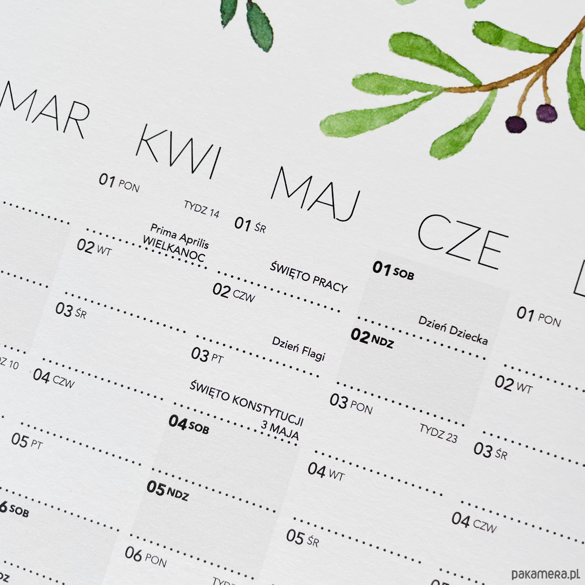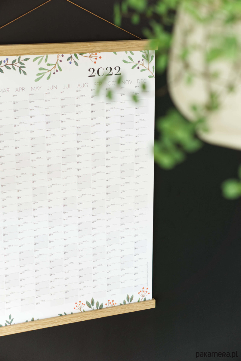Kalendarz ścienny 2024 - planer ścienny A2 z dębowym wieszakiem