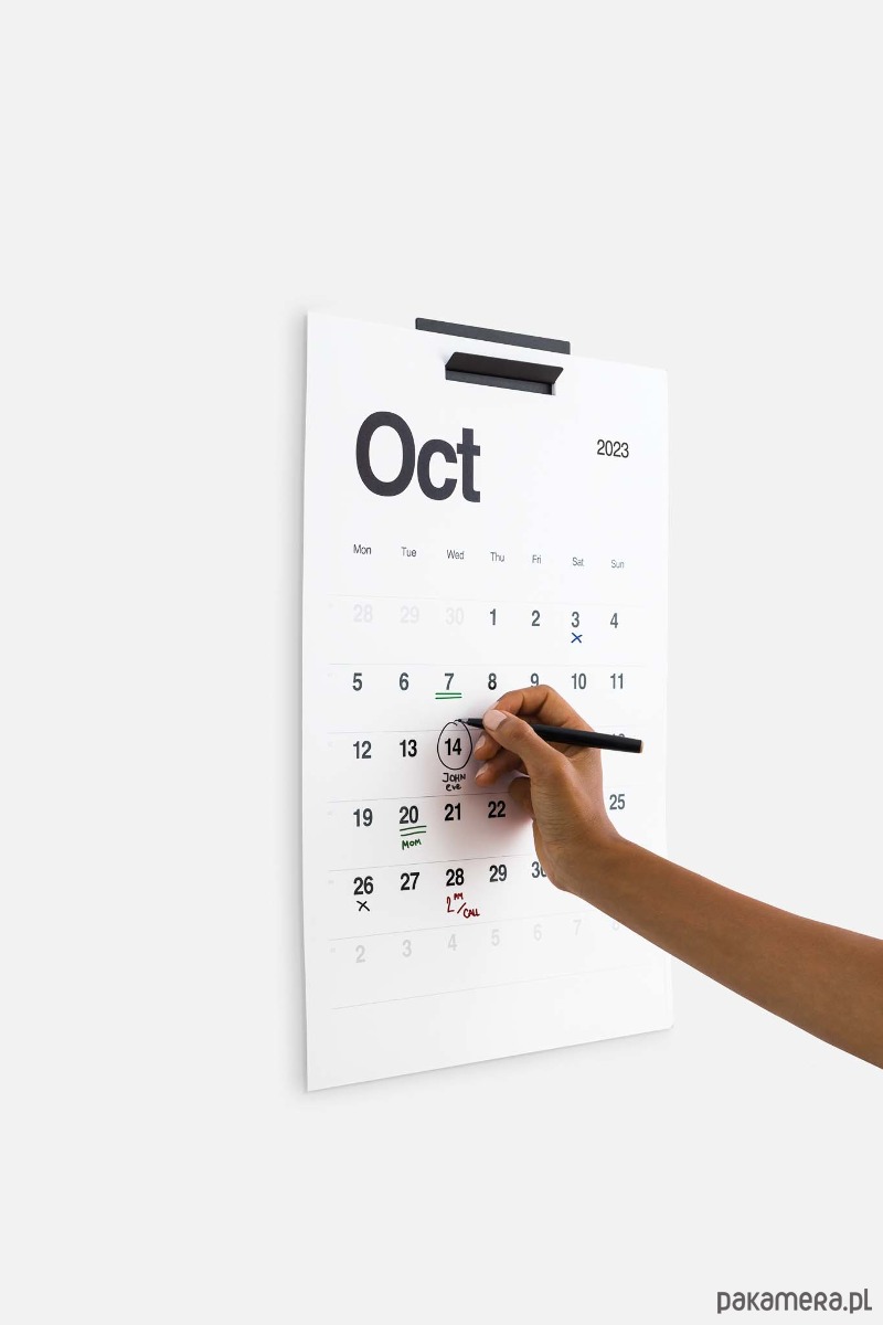Kal to minimalistyczny kalendarz ścienny wykonany z metalowego haczyka i sześciu dwustronnych arkuszy papieru. Jest uniwersalnym narzędziem do planowania czasu. Wygodna, starannie zaprojektowana siatka umożliwia łatwe zapisywanie spotkań, śledzenie harmonogramu i przeglądanie notatek na cały miesiąc.