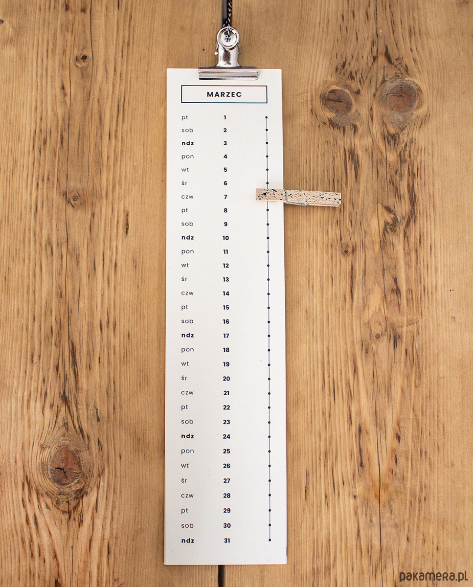 Oryginalny, ręcznie malowany spinacz pozwala zaznaczyć dany dzień.