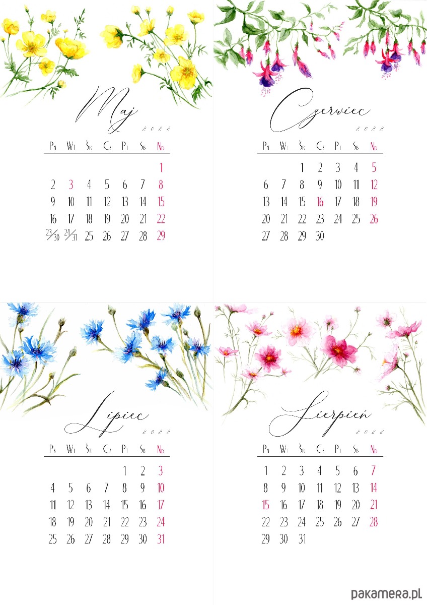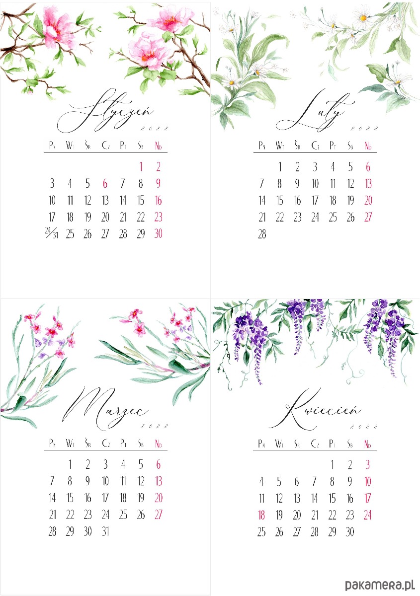 • Format A6 (105mm x 148mm) - karty z miesiącami