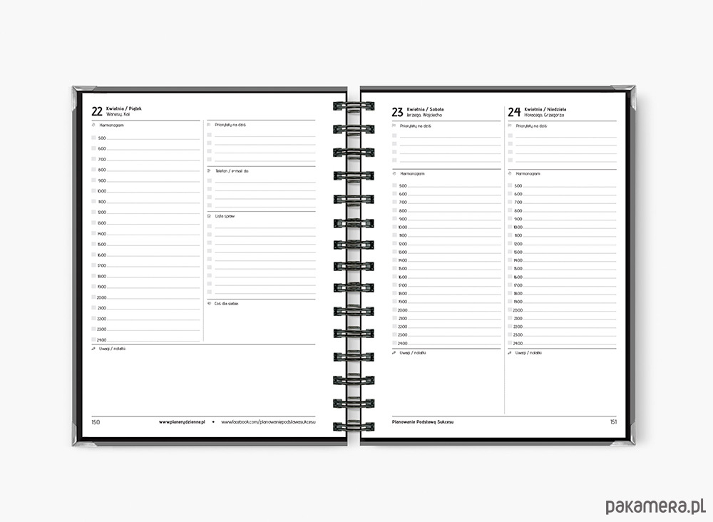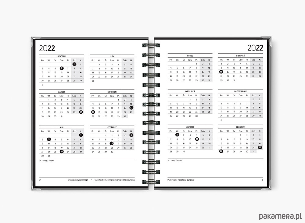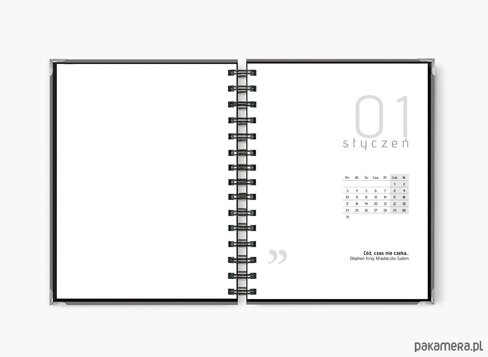 Uniwersalne, wygodne i proste narzędzie, dzięki któremu rozplanujemy i uporządkujemy sobie każdy dzień. Sam Kalendarz jest w formie wygodnego kołozeszytu w twardej oprawie, z okładką zabezpieczoną folią i metalowymi narożnikami. Zapewnia to odpowiednią trwałość i wygodę użytkowania.