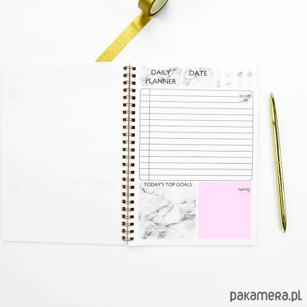 Notes z planem dnia, listą zadań, miejscem na notatki pomoże Ci zorganizować Twój dzień.