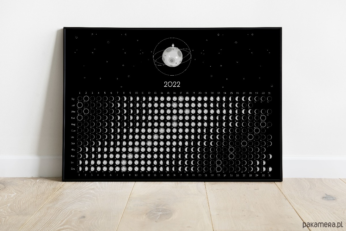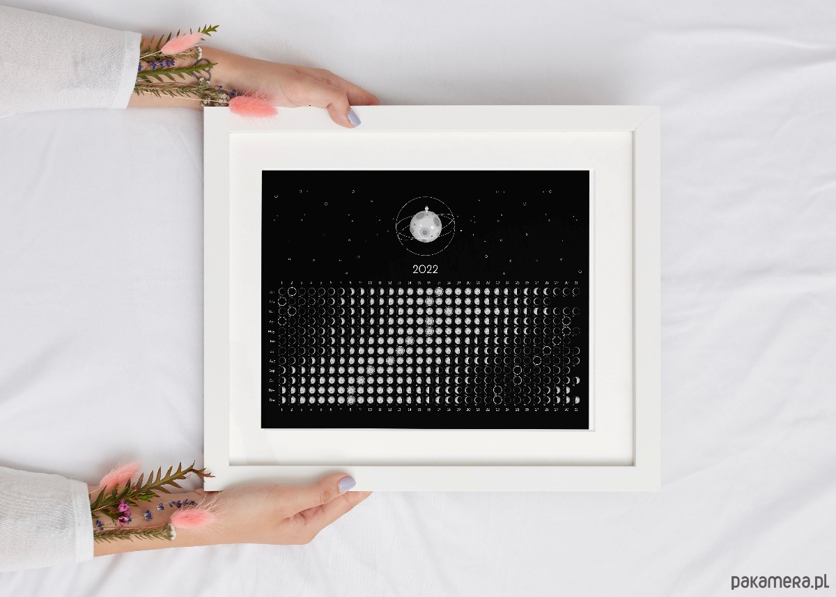 Kalendarz księżycowy narysowany przeze mnie i wydrukowany w wysokiej jakości na papierze min 200g. Format wydruku to A3. Wersja w polskiej wersji językowej lub angielskiej wersji językowej.