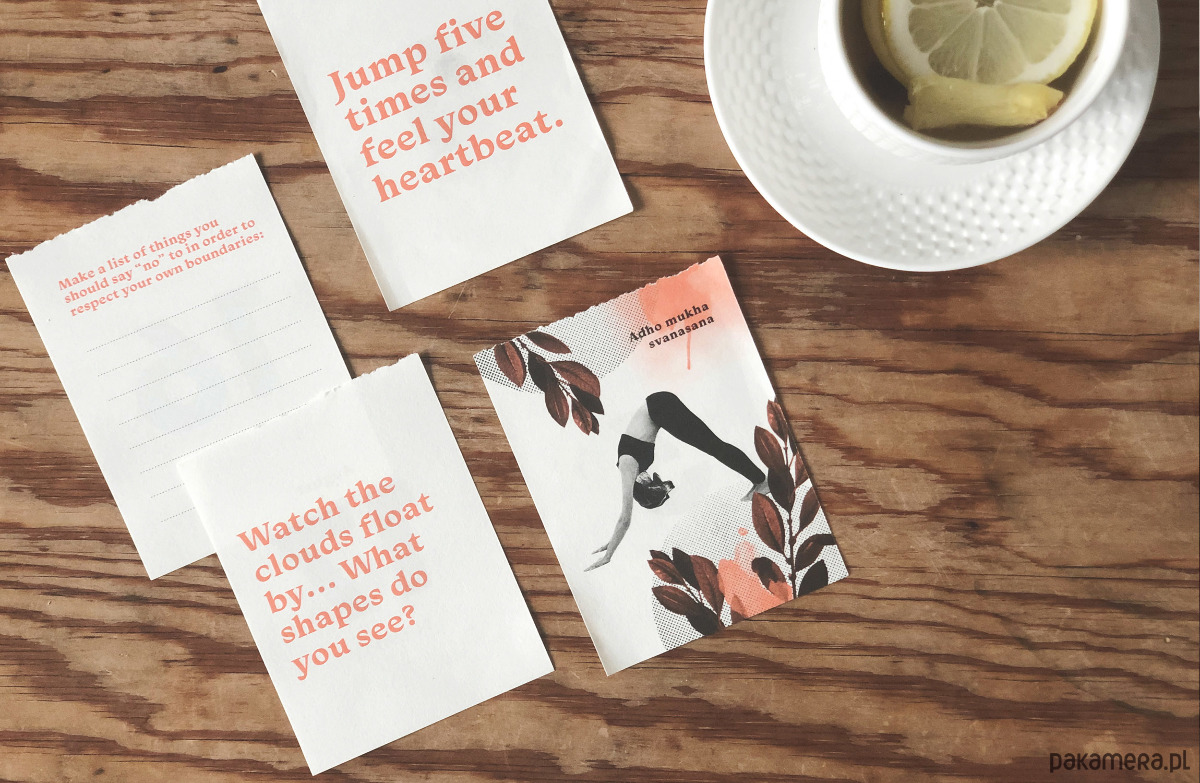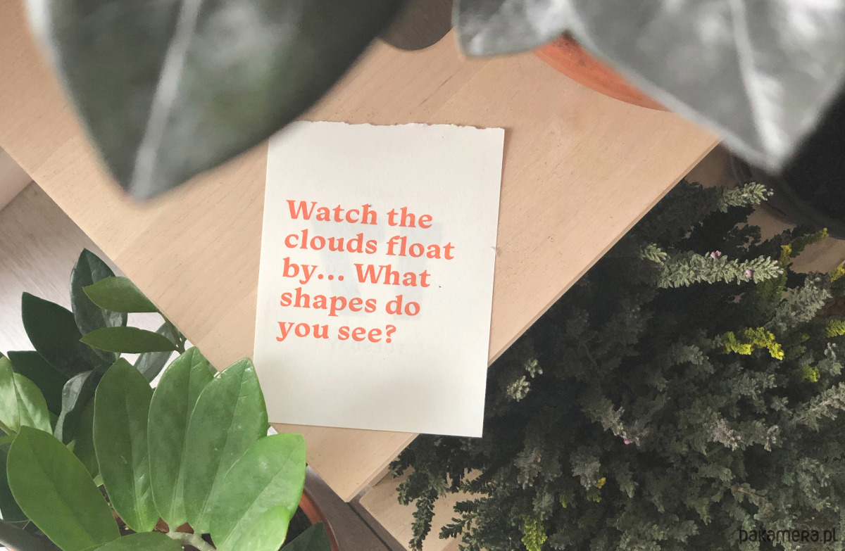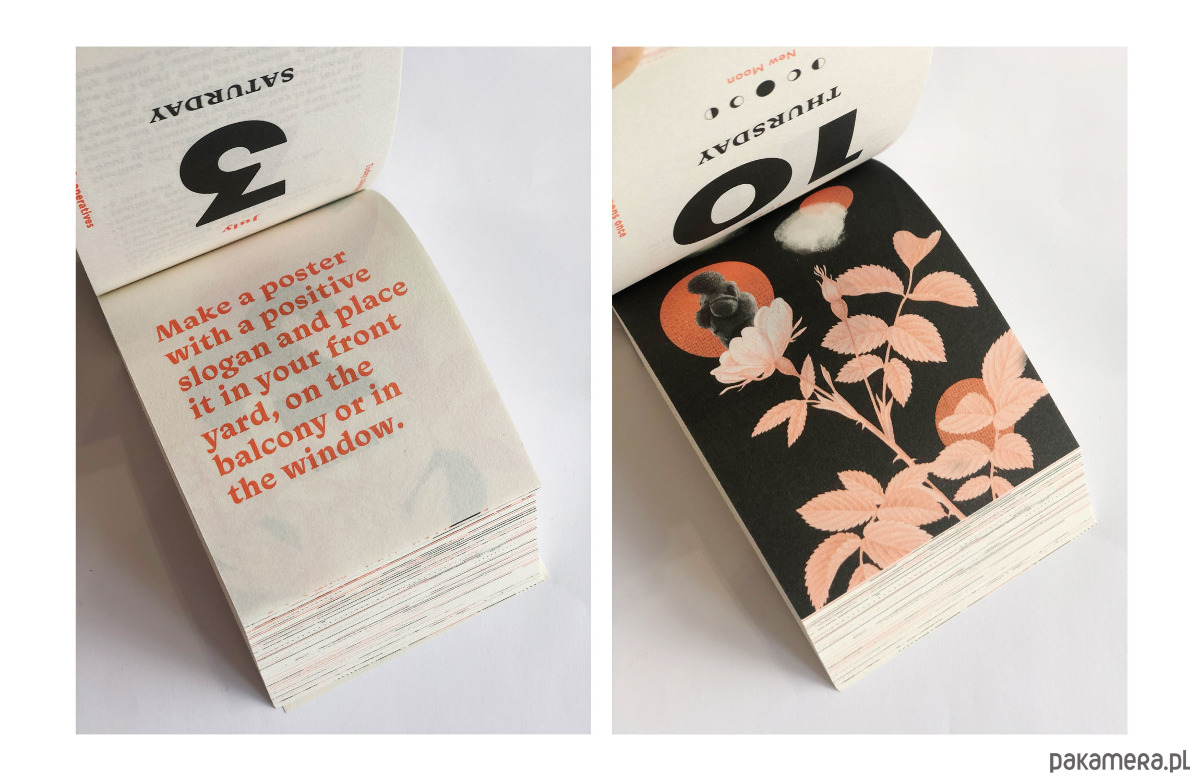 Zebrałyśmy w nim małe rytuały, które mają na celu pomóc skoncentrować się na “tu i teraz”, wspomagać auto-refleksję, przypominać o życzliwości i obcowaniu ze społecznością i z naturą, uczyć pysznych, sezonowych przepisów… Dodatkowo Maria Białecka z MOC Oddechu dorzuciła informacje na temat tego co dzieje się na niebie!