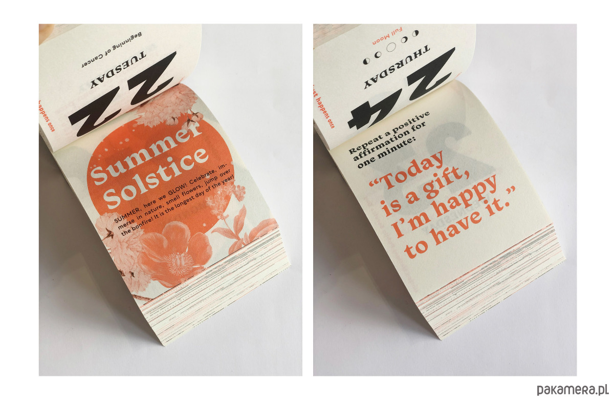 Kalendarz Today Calendar to klasyczny zdzierak ale bez klasycznej zawartości ? Zamiast imienin i sucharów znajdziecie w nim to co naprawdę lubimy - rytuały i zadania wspomagające uważność i życzliwość. Trochę natury, trochę jogi i gwiazd. Pyszne przepisy też oczywiście są ?