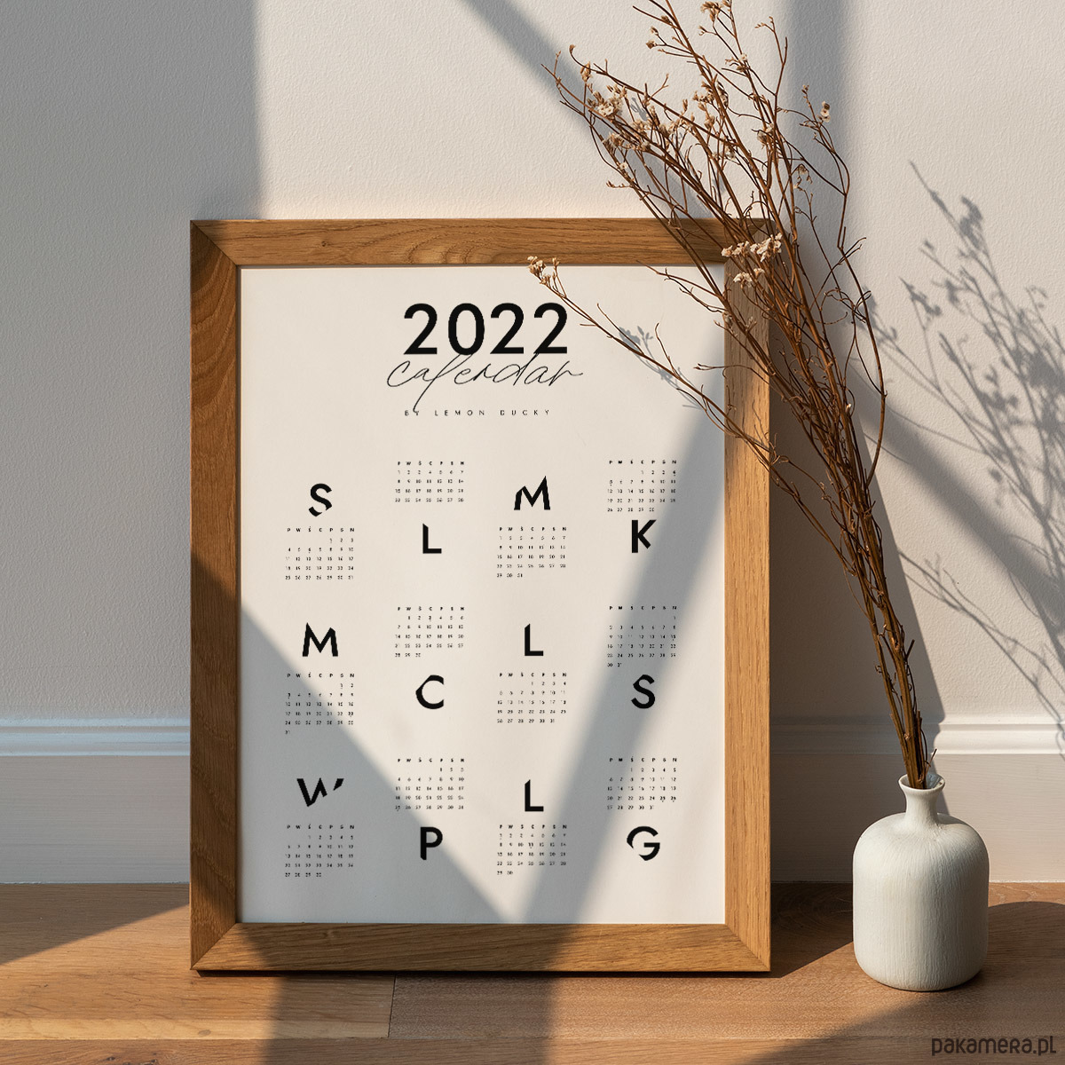 Kalendarz na rok 2022 z polskim układem dni tygodnia, z zaznaczonymi polskimi świętami.