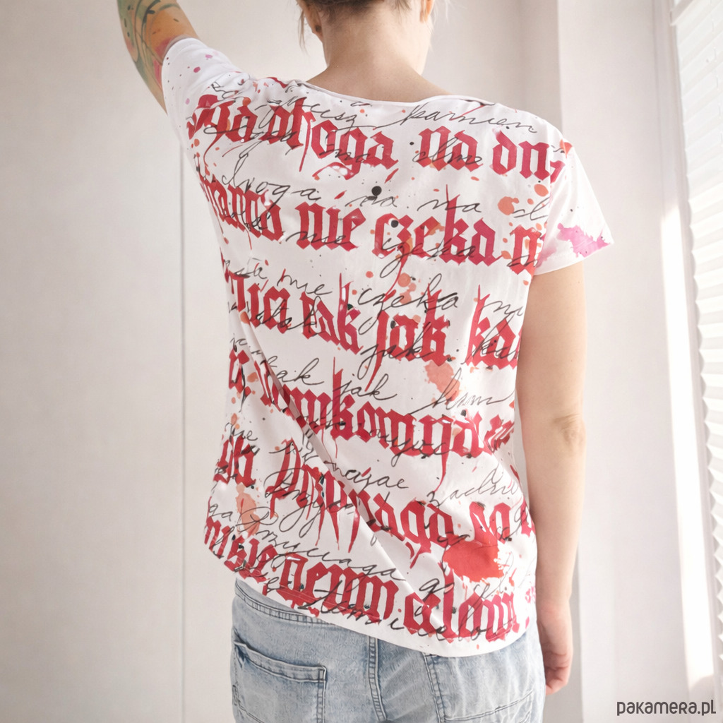 Nadruk na dzianinie jest tworzony specjalnie na potrzeby każdej koszulki.