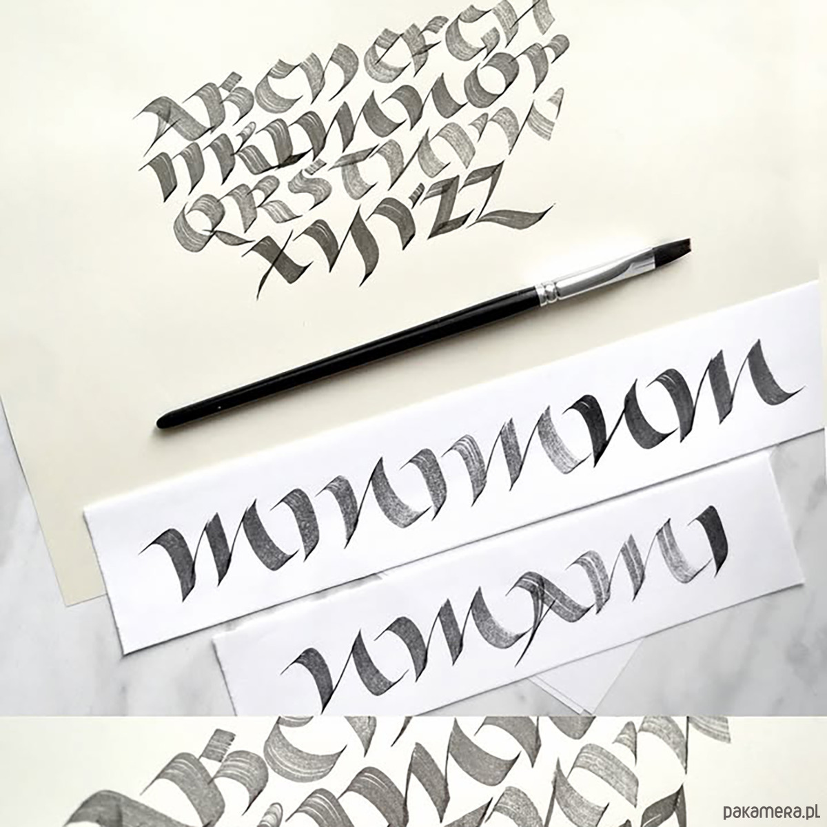 Szukasz czegoś świeżego w kaligrafii? Dołącz do naszego warsztatu i poczuj, jak litery ożywają w Twoich rękach! Szeroki pędzel daje więcej swobody niż klasyczna stalówka – pozwala tworzyć litery pełne ruchu, emocji i charakteru.