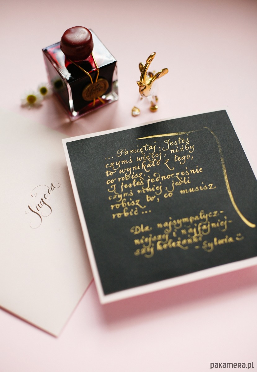 Kaligrafia: personalizowana kartka z życzeniami pisana atramentem