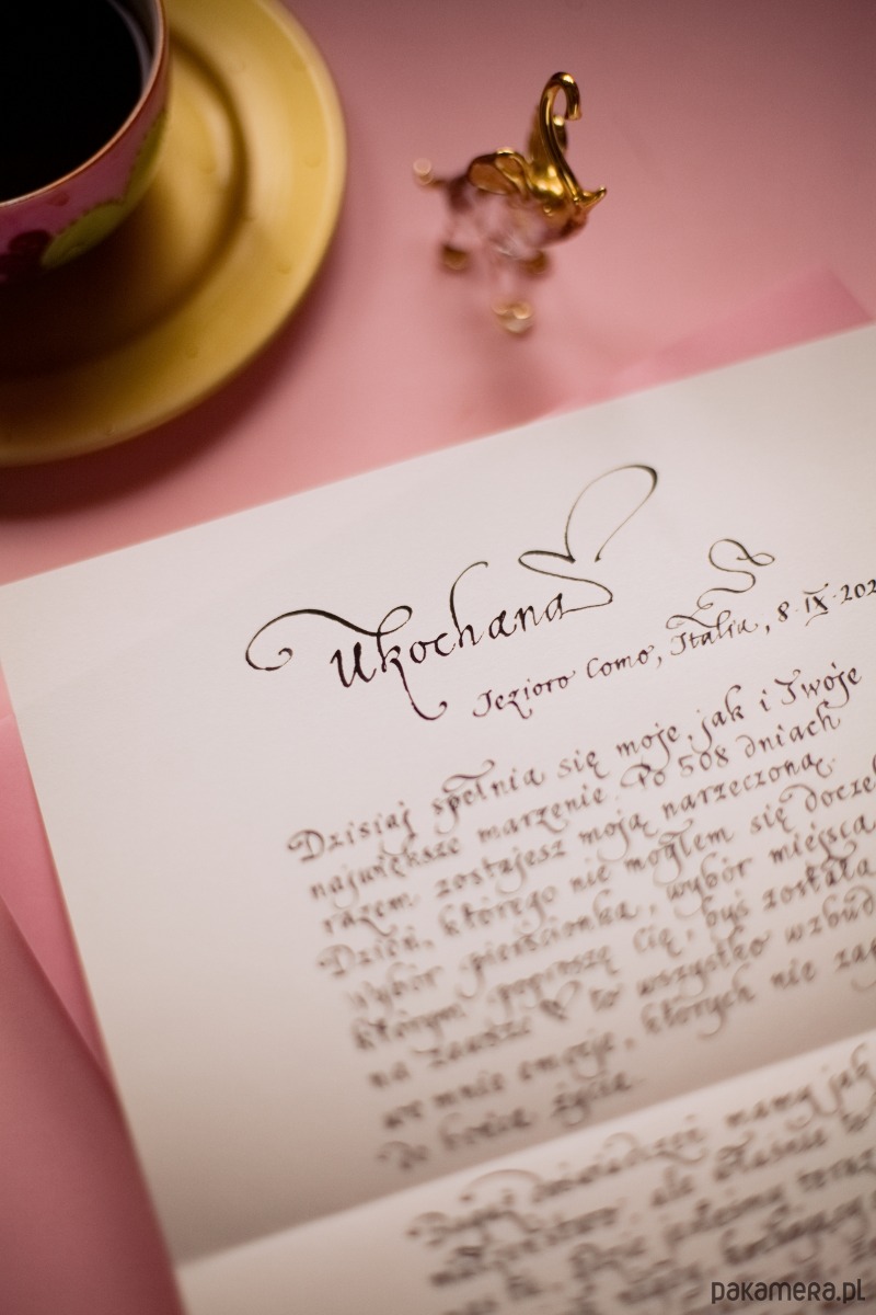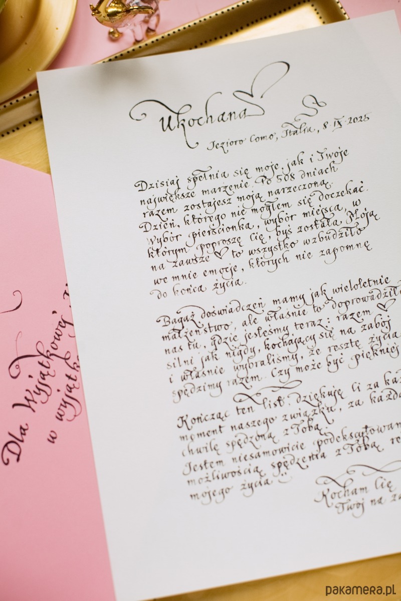 Kaligrafia: Personalizowany list miłosny dla Niej pisany ręcznie atramentem