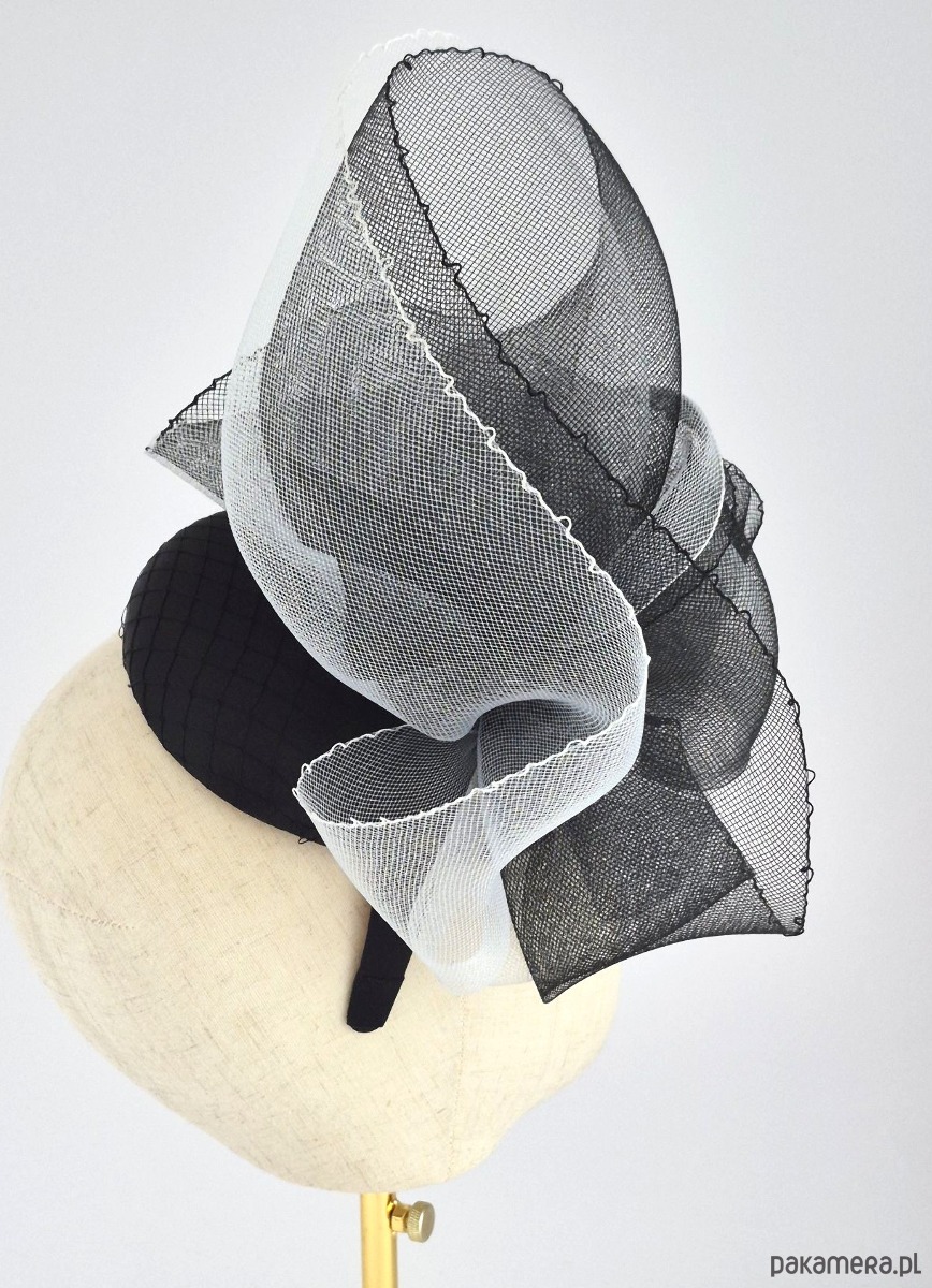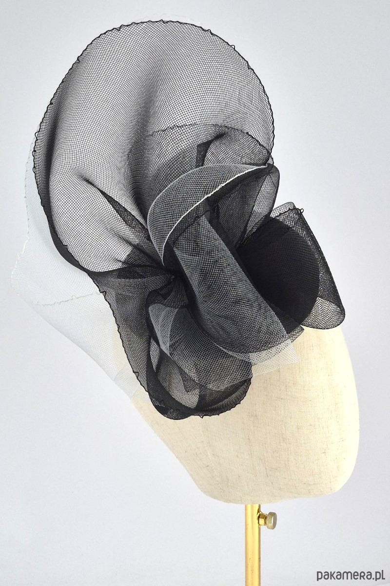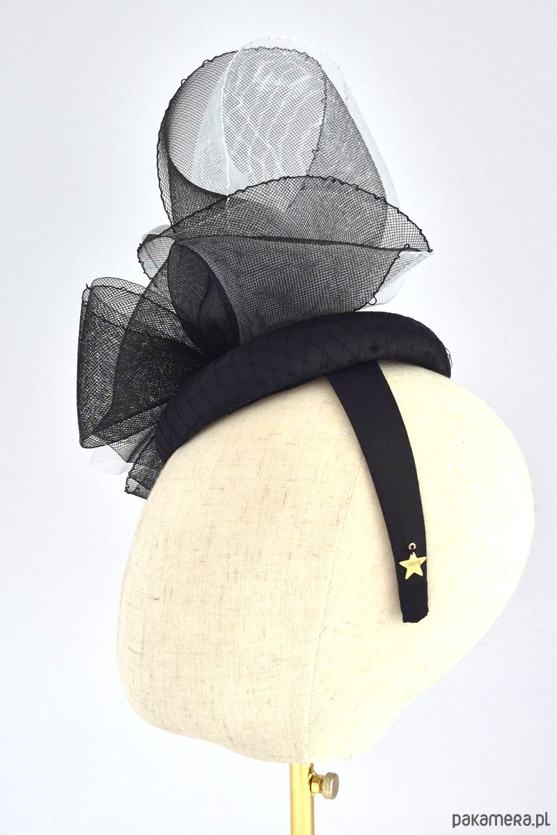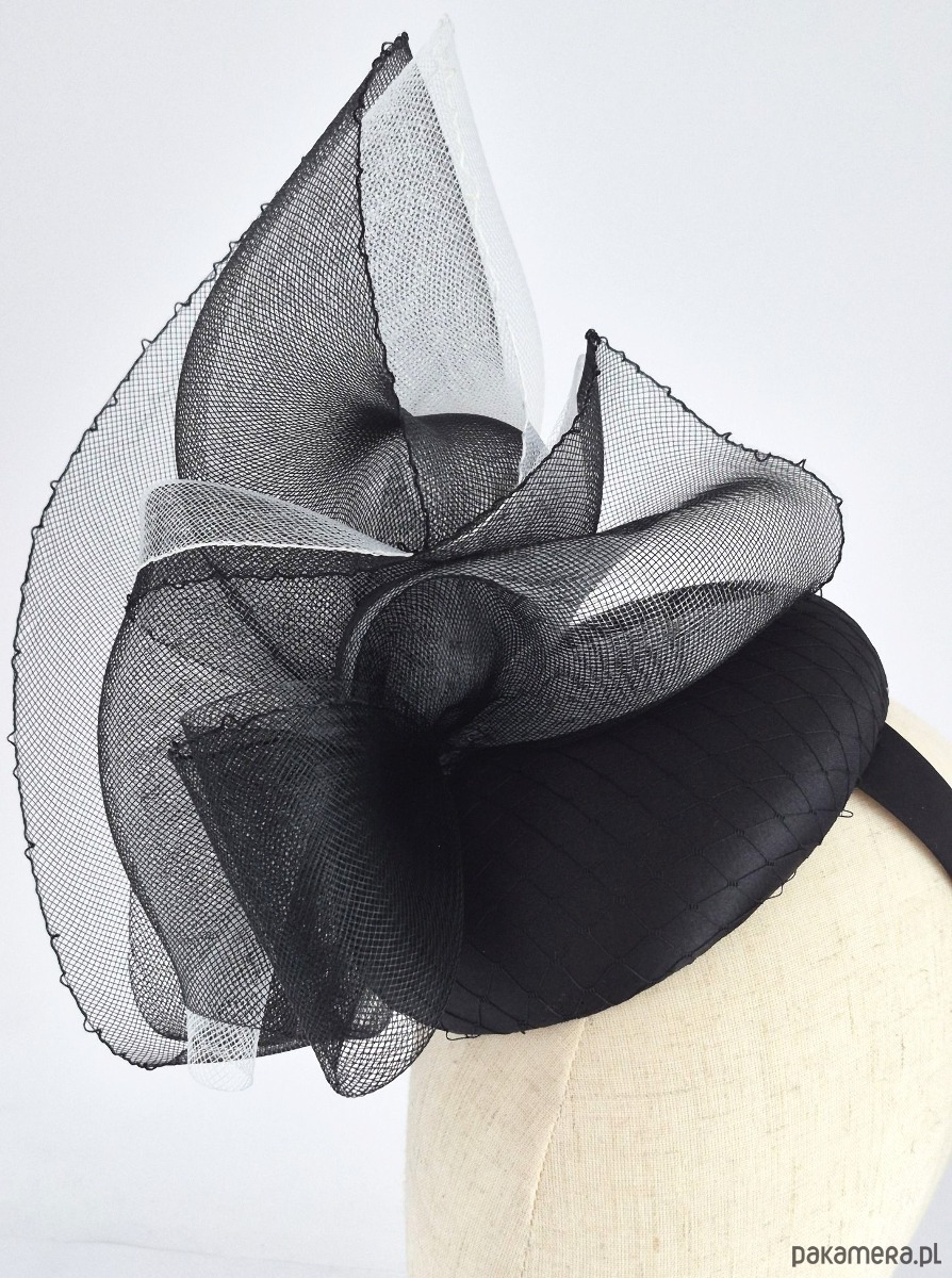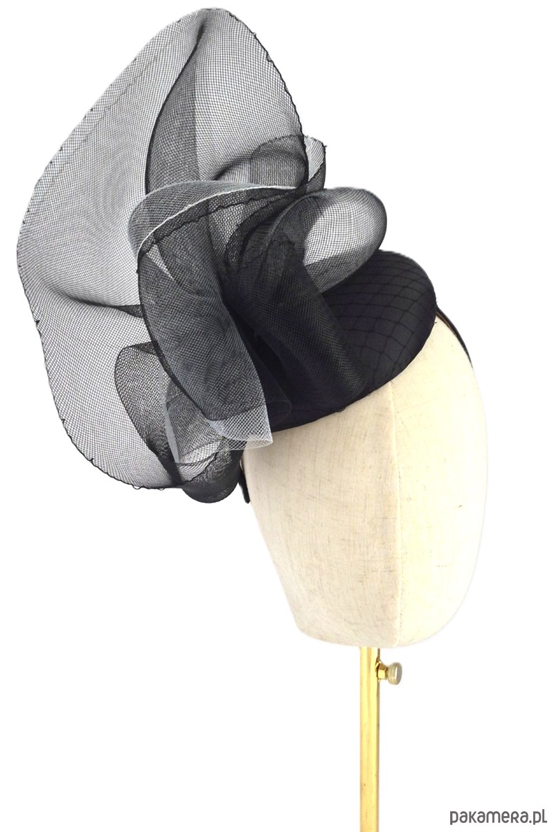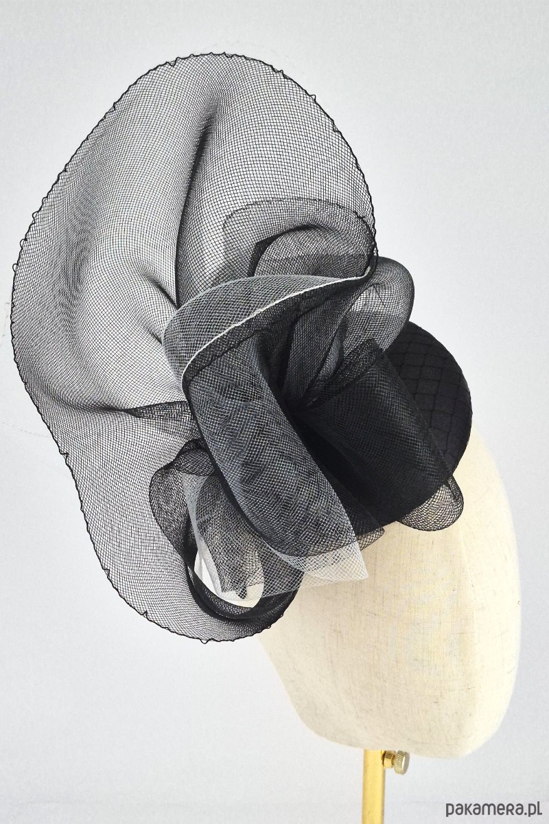 Baza: Usztywniana, pokryta gładką czarną satyną oraz delikatną, klasyczną woalką.