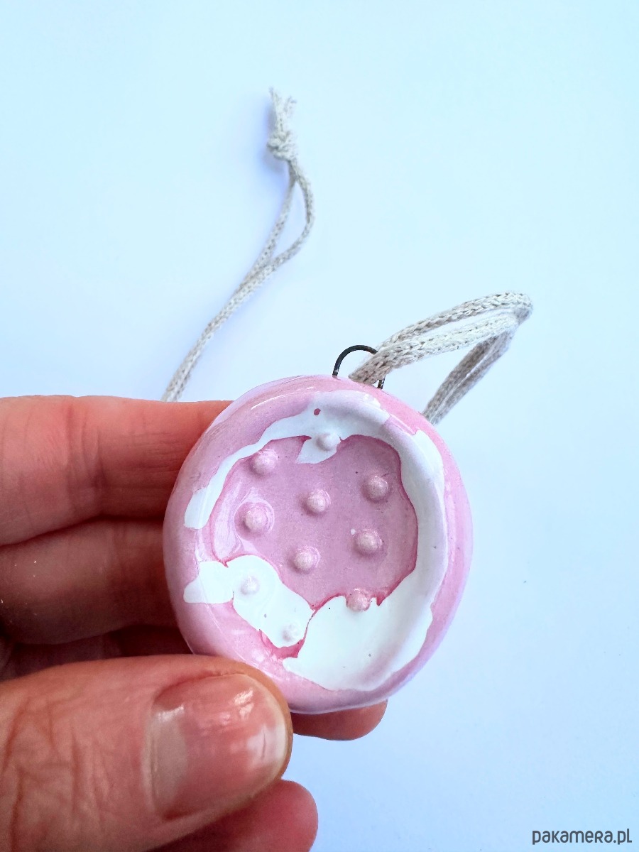 Kamień posiada haczyk, do którego dołączone jest kółko, dzięki czemu może służyć jako zawieszka lub naszyjnik ze sznurkiem.