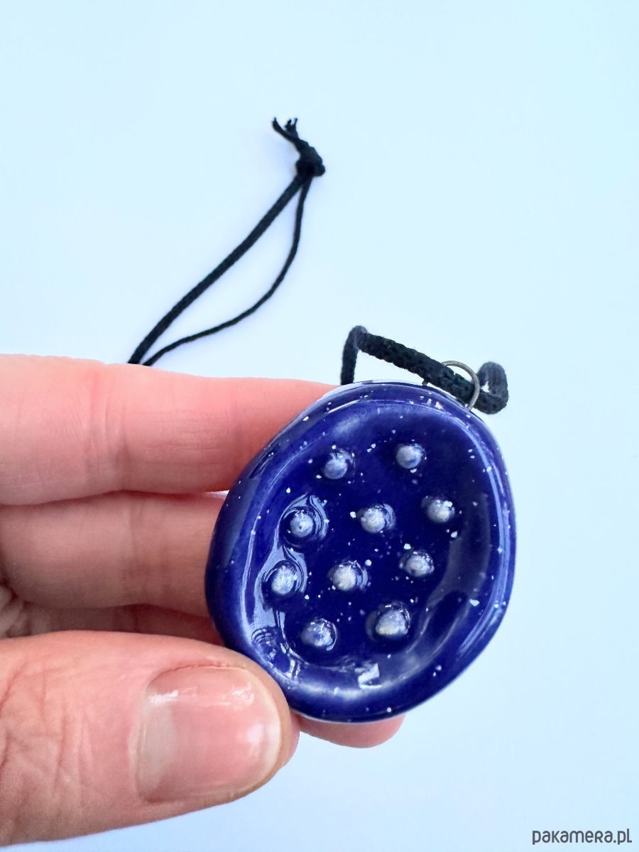 Kamień posiada haczyk, do którego dołączone jest kółko, dzięki czemu może służyć jako zawieszka lub naszyjnik ze sznurkiem.