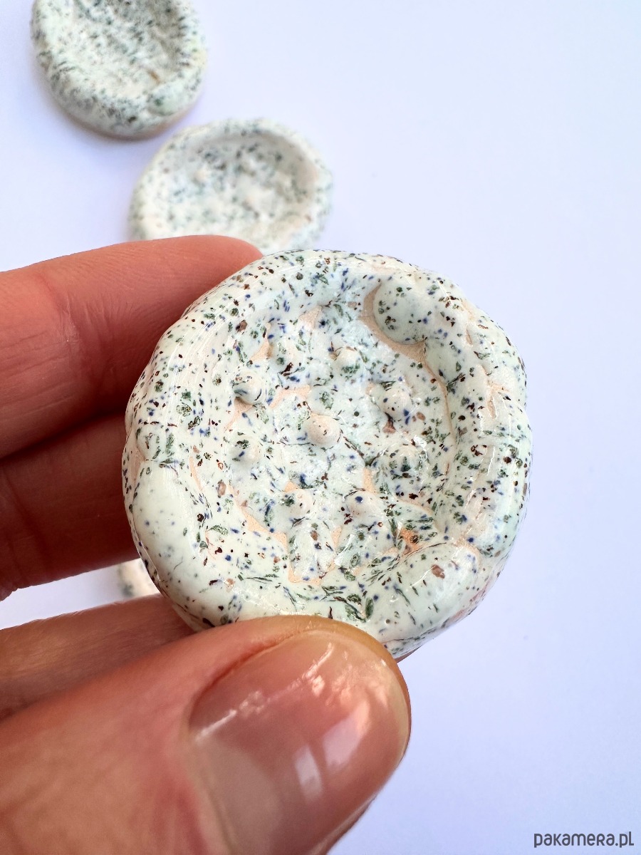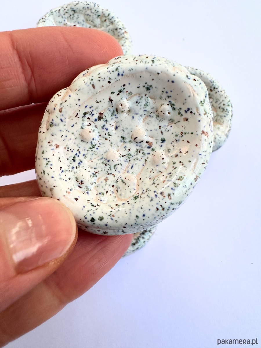 Każdy egzemplarz powstaje ręcznie - jest formowany i wypalany z dbałością o detal. Dzięki temu każdy kamień ma swój niepowtarzalny charakter i może stać się osobistym towarzyszem chwil skupienia.