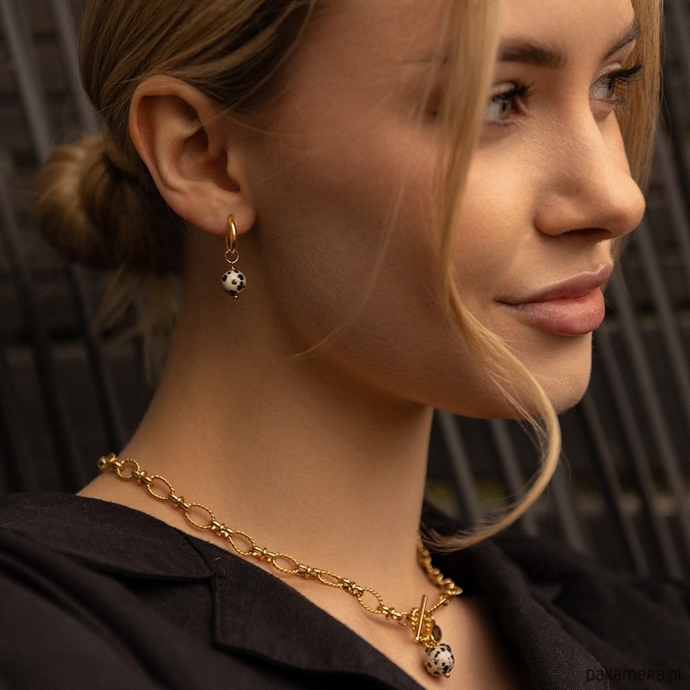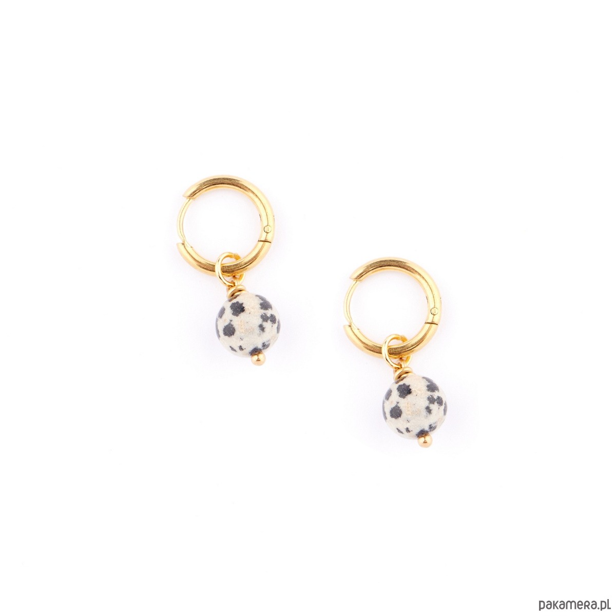 Poznaj nasze pozłacane kolczyki koła z zawieszką z Kamienia dalmatyńskiego. Kolczyki dzięki swojej uniwersalności będziesz mogła założyć do wielu stylizacji.