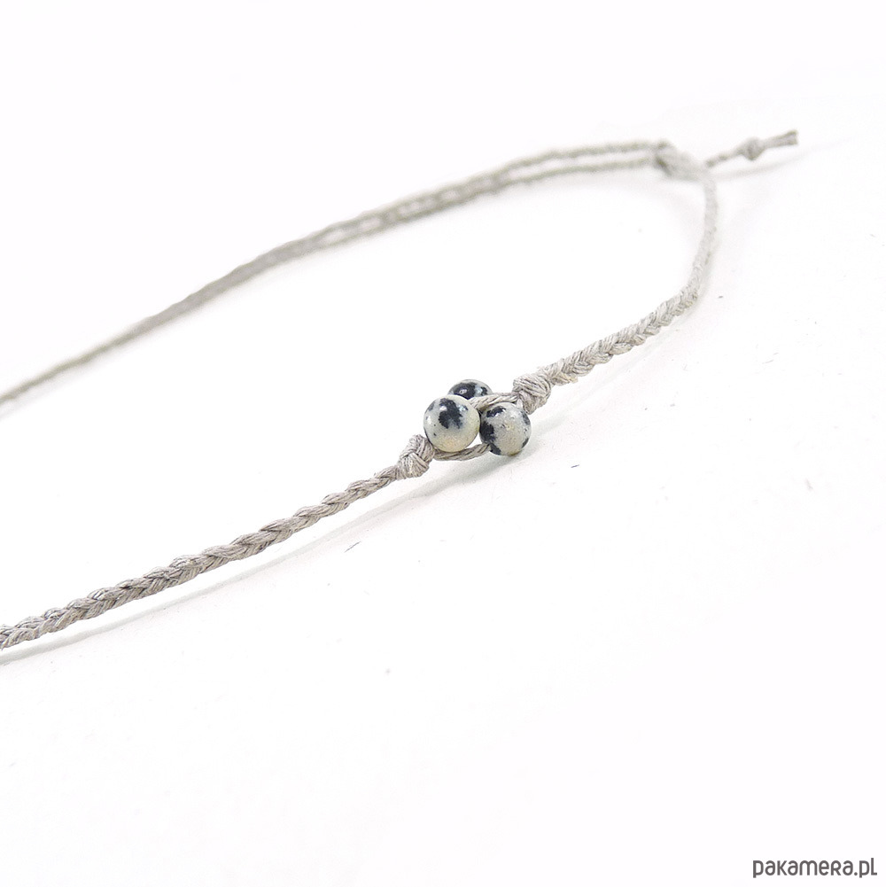 Wygodny, lekki, minimalistyczny naszyjnik wypleciony z nitek naturalnego lnu