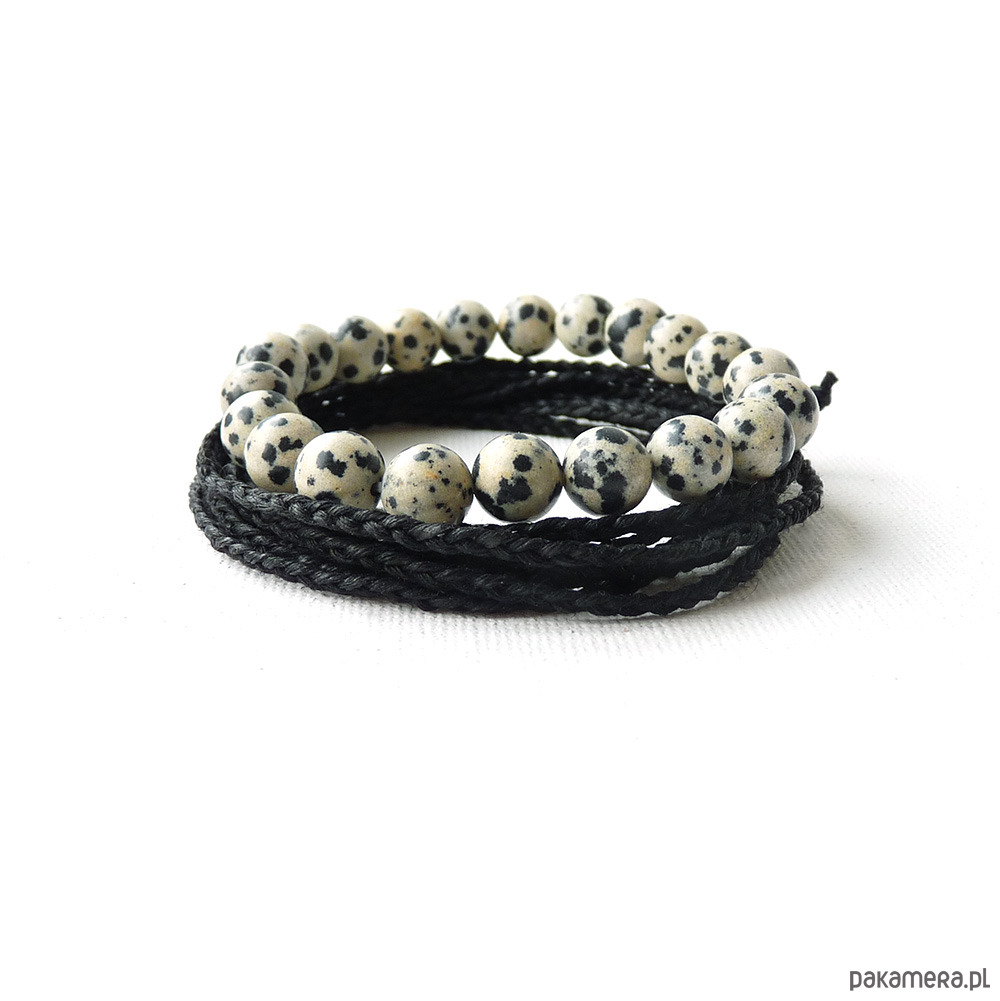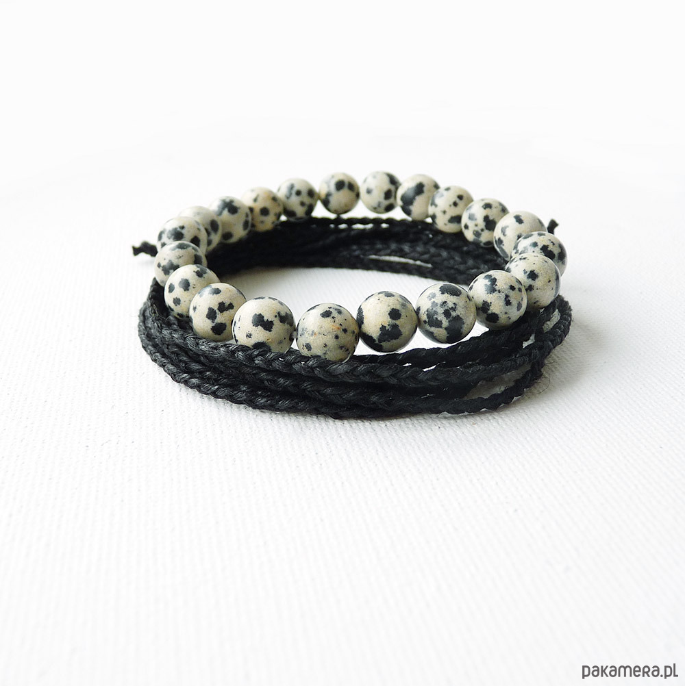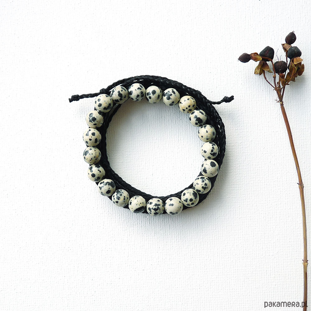 2. Bransoletka na gumce z kulek matowego jaspisu dalmatyńskiego 8,5 mm