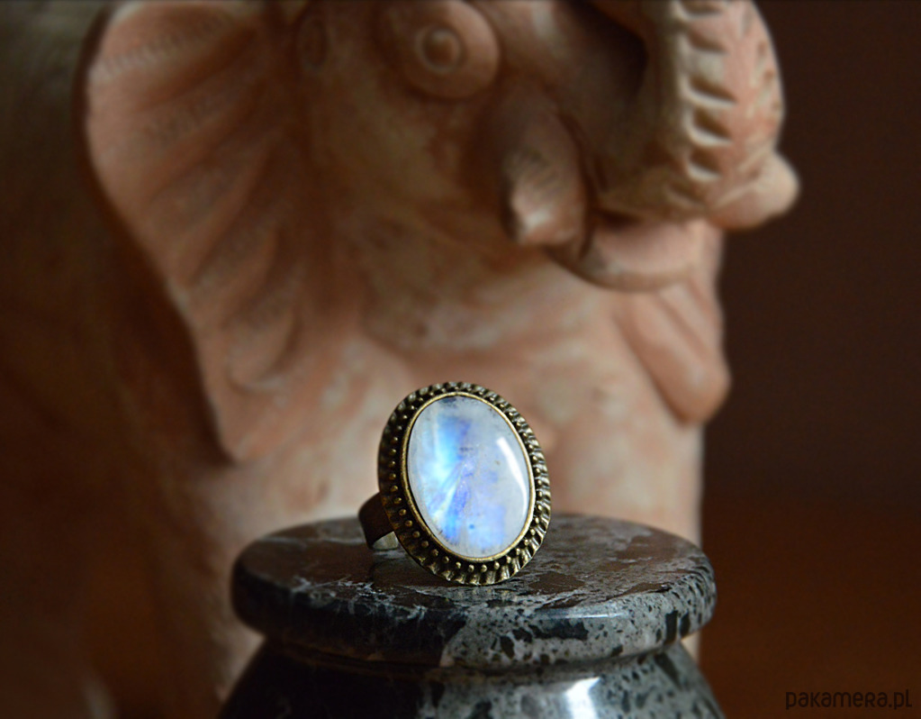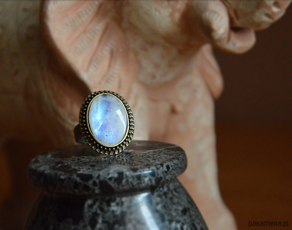 Kamień pierścionka, to przepiękny Kamień Księżycowy Adularowy z Birmy