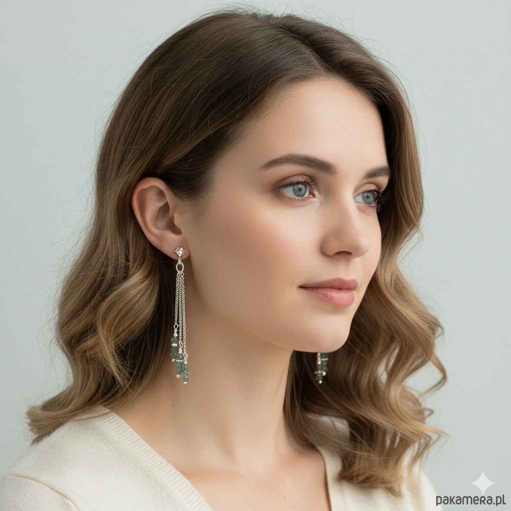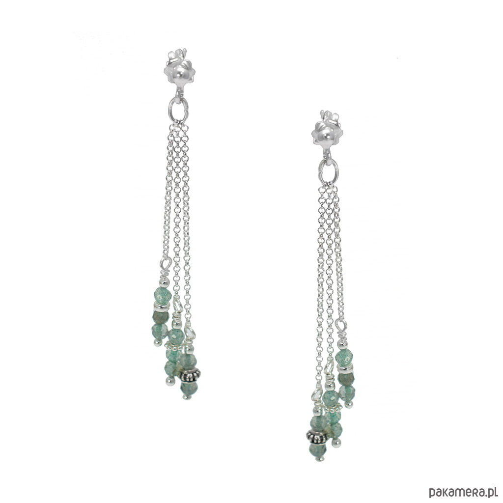 Kamień księżycowy, srebro 925, długie, zielone kolczyki