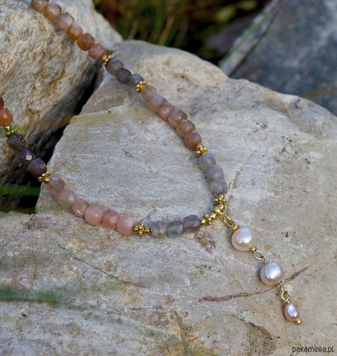 Kamienie księżycowe z perełkami, naszyjnik