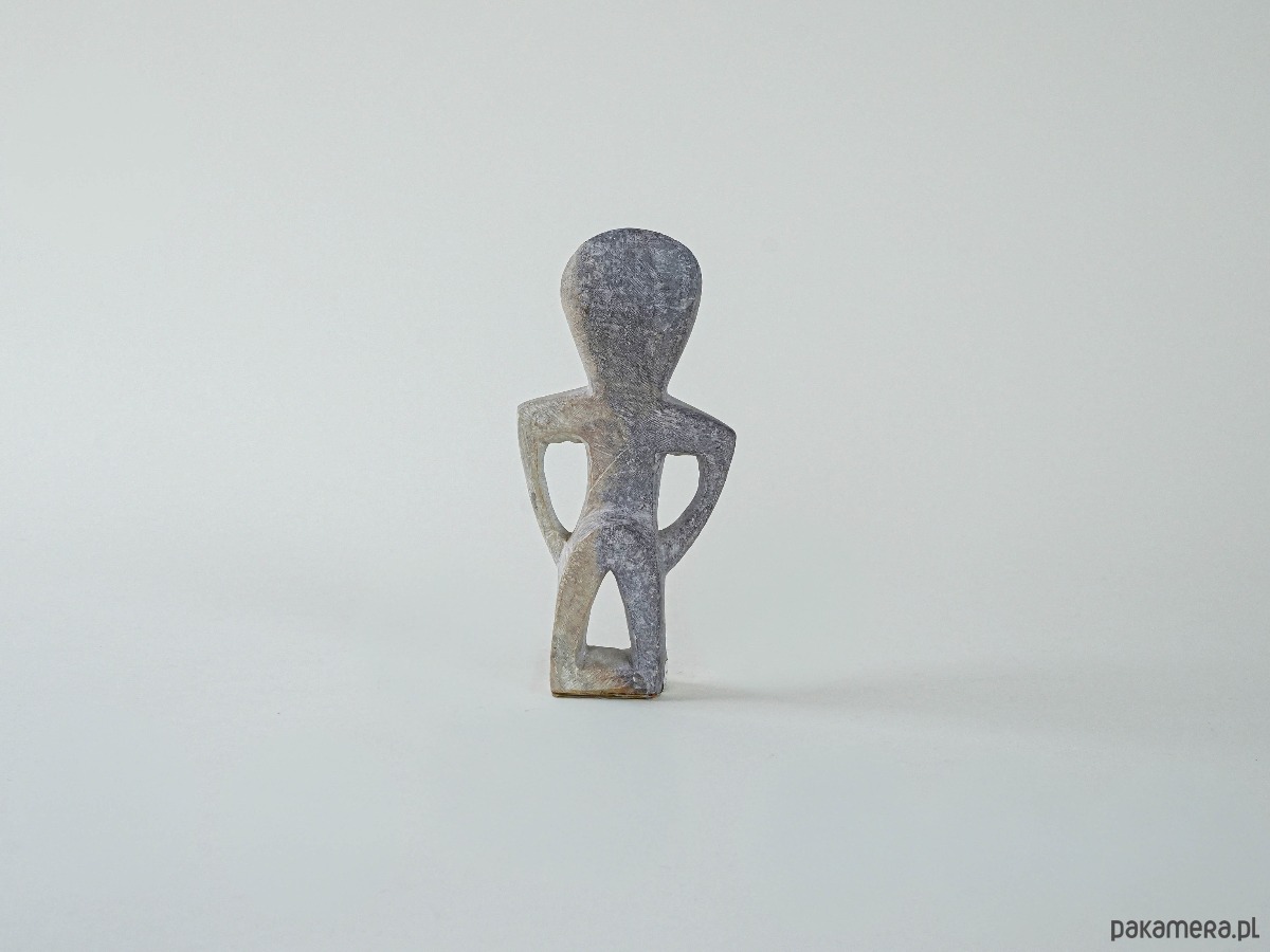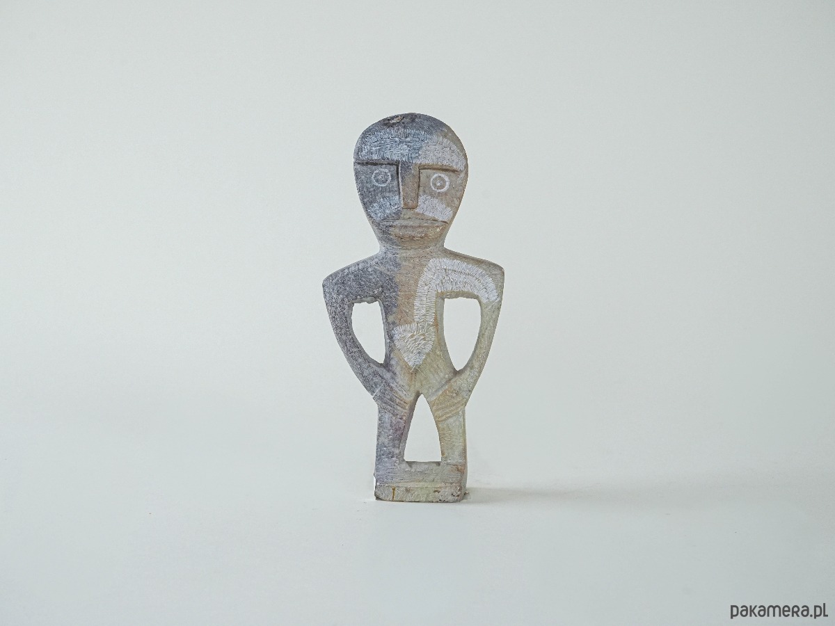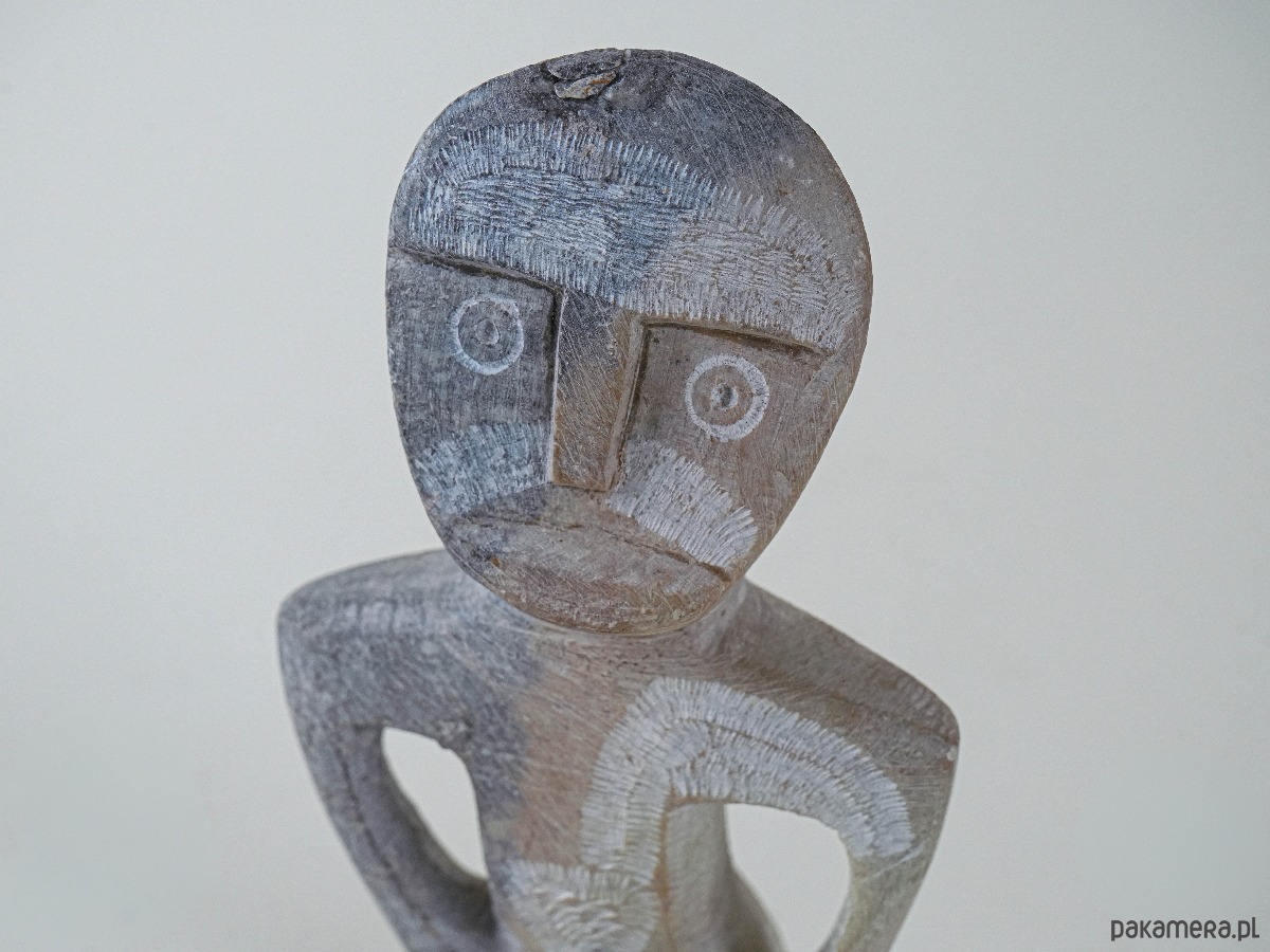 Ręcznie wykonana figura o surowym, geometrycznym wyrazie. Wykuta z kamienia, z wyraźnie zaznaczonymi rysami twarzy i rytualnymi zdobieniami. Przywołuje skojarzenia z tradycyjną sztuką plemienną i totemiczną. Unikatowy obiekt dekoracyjny – idealny do wnętrz w stylu boho, etno czy artystycznym minimalizmie.