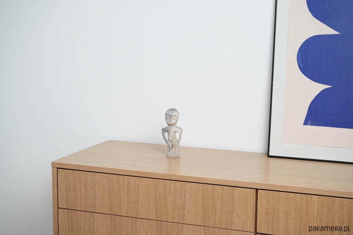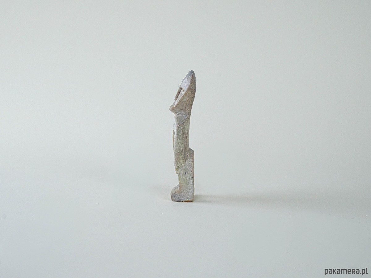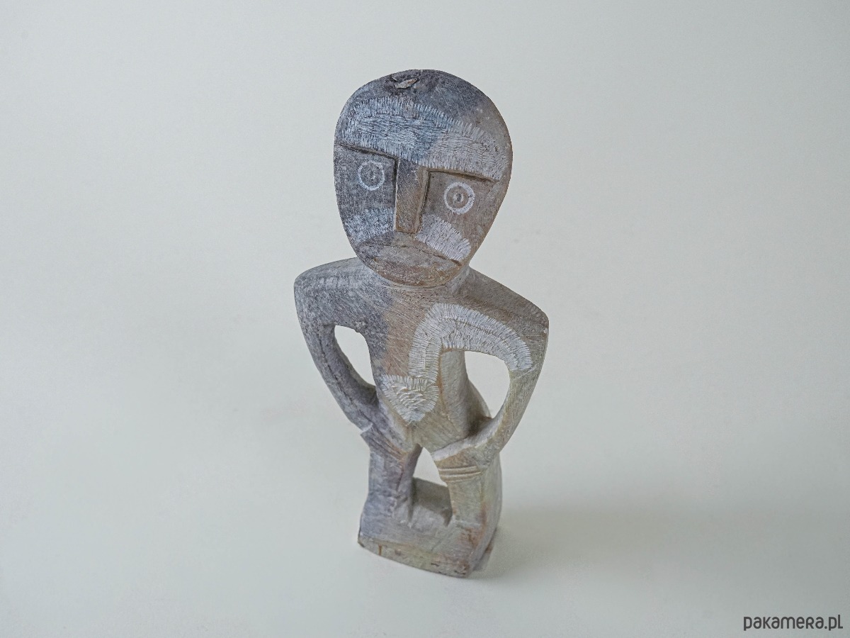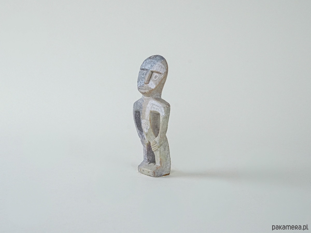Ręcznie wykonana figura o surowym, geometrycznym wyrazie. Wykuta z kamienia, z wyraźnie zaznaczonymi rysami twarzy i rytualnymi zdobieniami. Przywołuje skojarzenia z tradycyjną sztuką plemienną i totemiczną. Unikatowy obiekt dekoracyjny – idealny do wnętrz w stylu boho, etno czy artystycznym minimalizmie.
