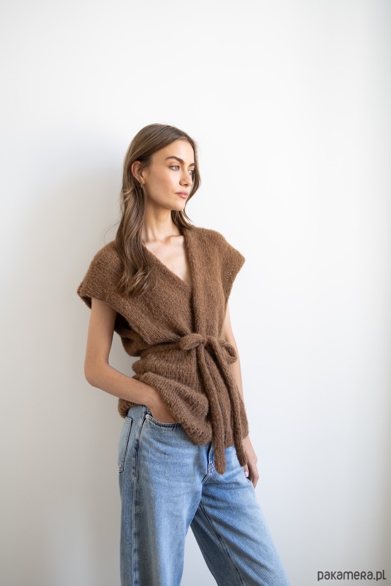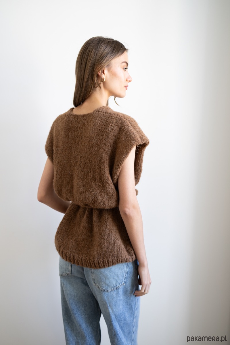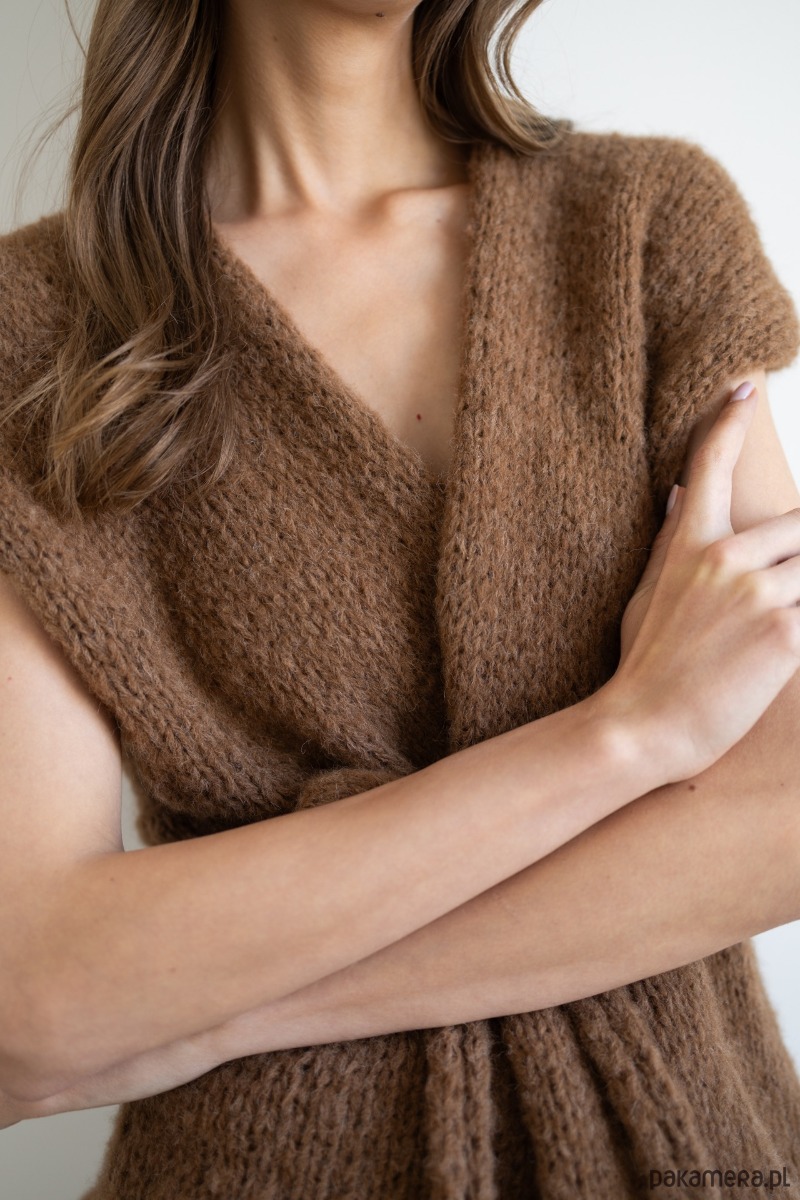 - Typ kamizelki: dzianinowa, bez rękawów, elegancka