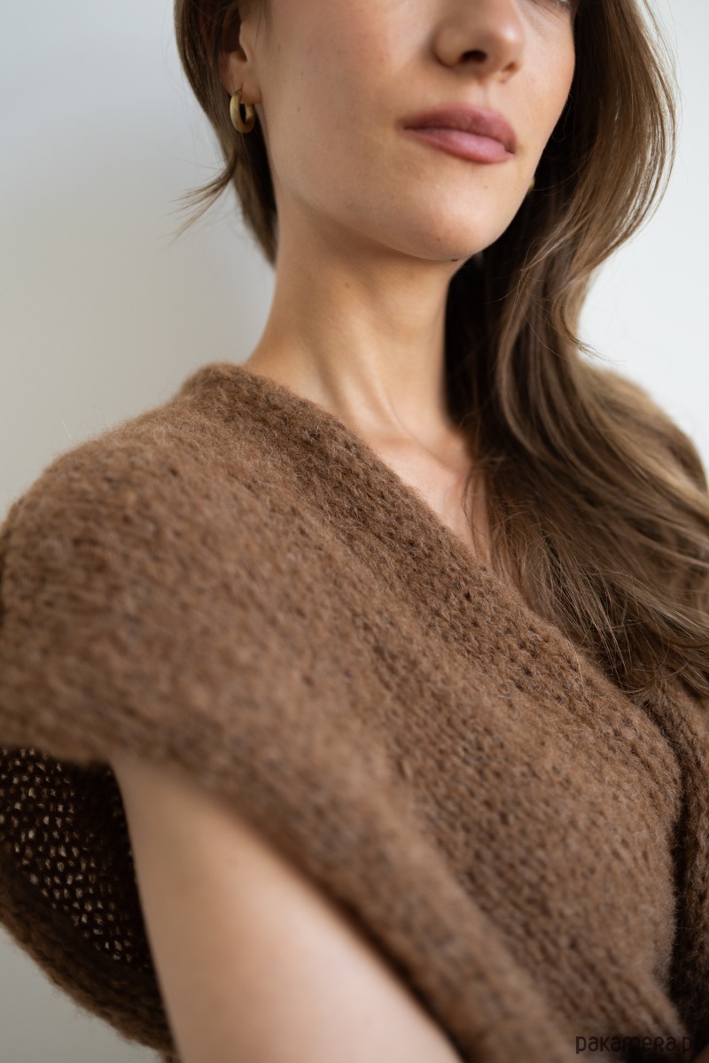 Prostota, która przyciąga uwagę. Minimalistyczna kamizelka z wyjątkowej, drapanej alpaki – w 100% niefarbowanej, od polskiego producenta Gabo Wool. Wiązana na delikatny pasek, podkreśla sylwetkę, zachowując lekkość i miękkość materiału. Naturalna barwa i puszysta faktura sprawiają, że to subtelny, a jednocześnie wyjątkowy element garderoby.
