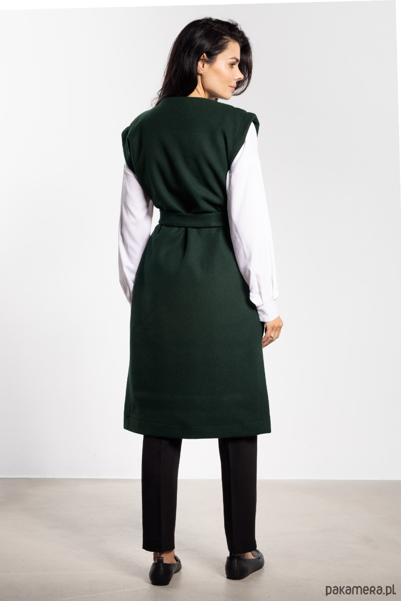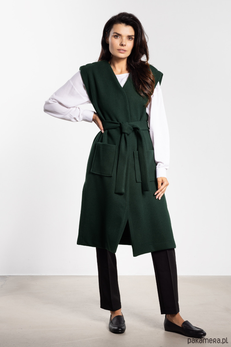 Długa kamizelka damska z miękkiego flauszu to idealny wybór na chłodniejsze dni. Minimalistyczny, prosty krój sprawia, że pasuje zarówno do eleganckich spodni, jak i casualowych jeansów. Dołączony pasek pozwala podkreślić talię, a noszona luźno nadaje stylizacji swobodnego charakteru. Praktyczne, duże kieszenie oraz rozcięcia po bokach zwiększają funkcjonalność i nowoczesny wygląd. Polska produkcja i staranne wykończenie gwarantują wysoką jakość, czyniąc kamizelkę niezastąpionym elementem jesiennej garderoby.