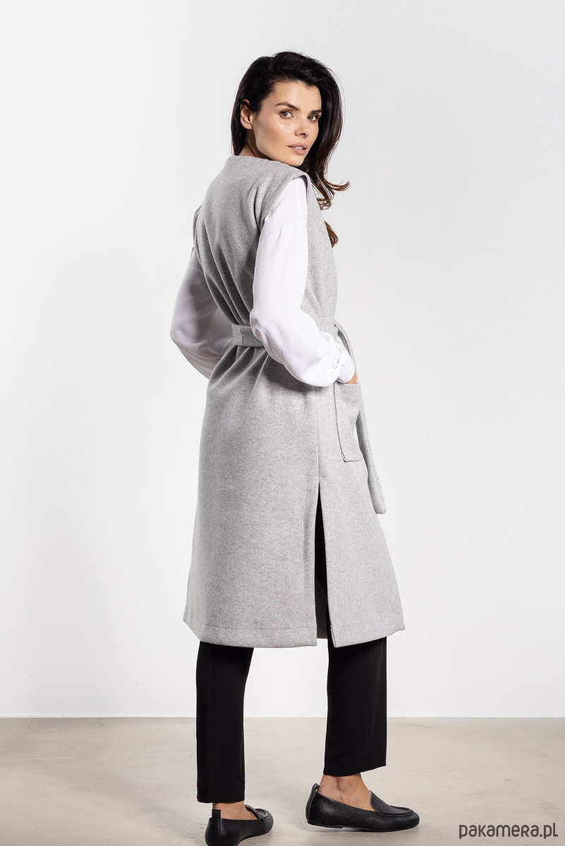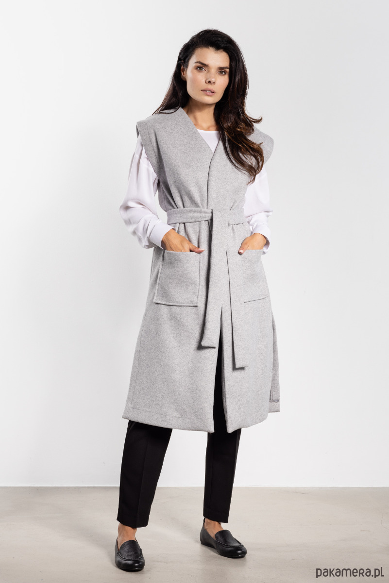 Długa kamizelka damska z miękkiego flauszu to idealny wybór na chłodniejsze dni. Minimalistyczny, prosty krój sprawia, że pasuje zarówno do eleganckich spodni, jak i casualowych jeansów. Dołączony pasek pozwala podkreślić talię, a noszona luźno nadaje stylizacji swobodnego charakteru. Praktyczne, duże kieszenie oraz rozcięcia po bokach zwiększają funkcjonalność i nowoczesny wygląd. Polska produkcja i staranne wykończenie gwarantują wysoką jakość, czyniąc kamizelkę niezastąpionym elementem jesiennej garderoby.