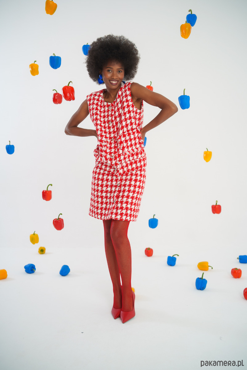 Wzór: Urokliwy wzór w pepitkę biało czerwoną, który przyciąga wzrok i nadaje energii każdemu outfitowi.