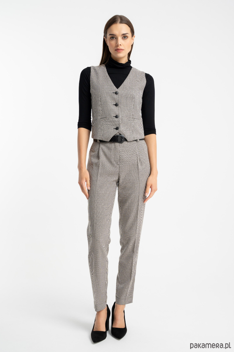 Posiada zaszewki z przodu i z tyłu, oraz gumkę w talii z tyłu co sprawia, że kamizelka idealnie układa się na ciele.