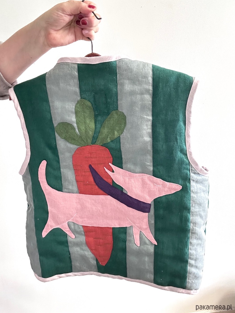 Kamizelka lniana patchworkowa Jamnik i marchewka