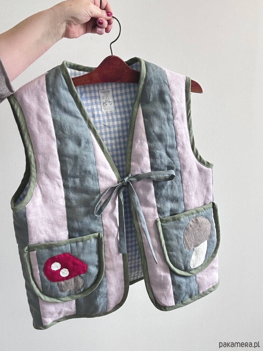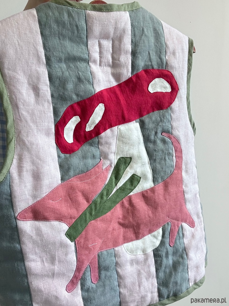 Kamizelka lniana patchworkowa Jamnik i muchomor