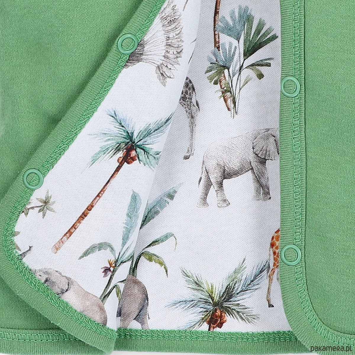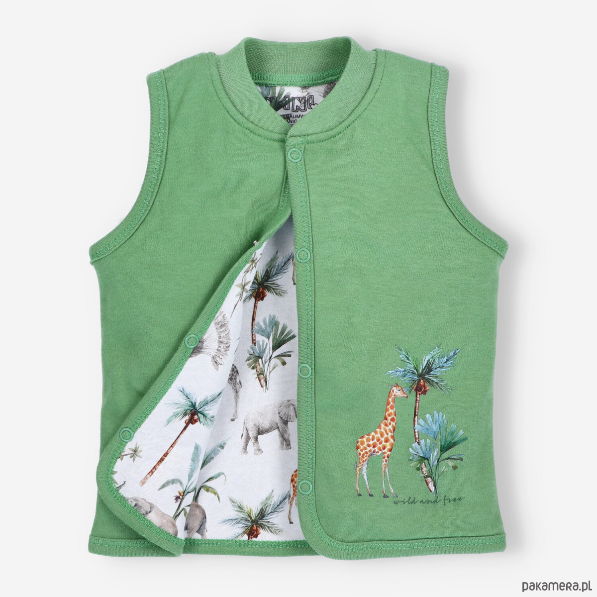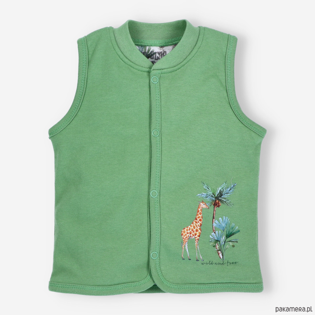 Kamizelka dla chłopca z kolekcji SAFARI ADVENTURE. Uszyta w Polsce z bardzo przyjemnej w dotyku bawełny organicznej. Do produkcji tego materiału stosuje się jedynie naturalne metody. Włókna bawełny eko są silniejsze, bardziej sprężyste i odporne na rozciąganie dzięki czemu posłużą dłużej. Bezniklowe napki i delikatne, miękkie lamówki to dodatkowe atuty ubranka. Marka NINI jako jedna z niewielu w Polsce posiada międzynarodowy certyfikat OEKO-TEX STANDARD 100, który potwierdza, że jej wyroby spełniają najwyższe normy bezpieczeństwa dla niemowląt Kupując ubranka NINI dbasz o środowisko oraz bezpieczeństwo i zdrowie swoich dzieci.