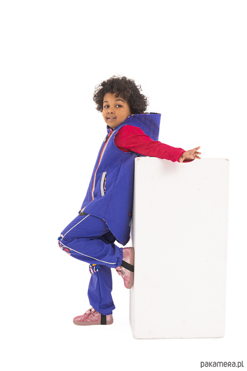 Kamizelka pikowana z Patentem to niesamowicie proste rozwiązanie, dzięki któremu kamizelka nie podciąga się do góry. Element krokowy chroni plecki dziecka aby nie były odsłonięte i trzyma kamizelkę na właściwym miejscu. Element krokowy można w łatwy sposób regulować lub całkowicie odpiąć dzięki mocowaniu na napy.