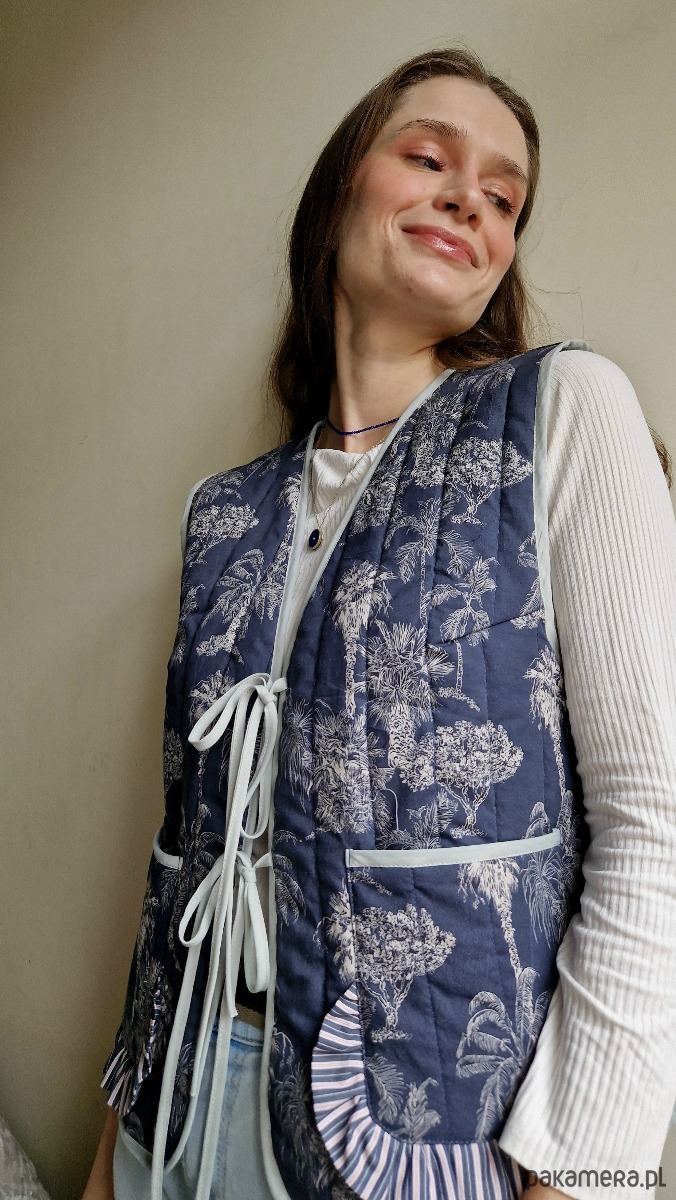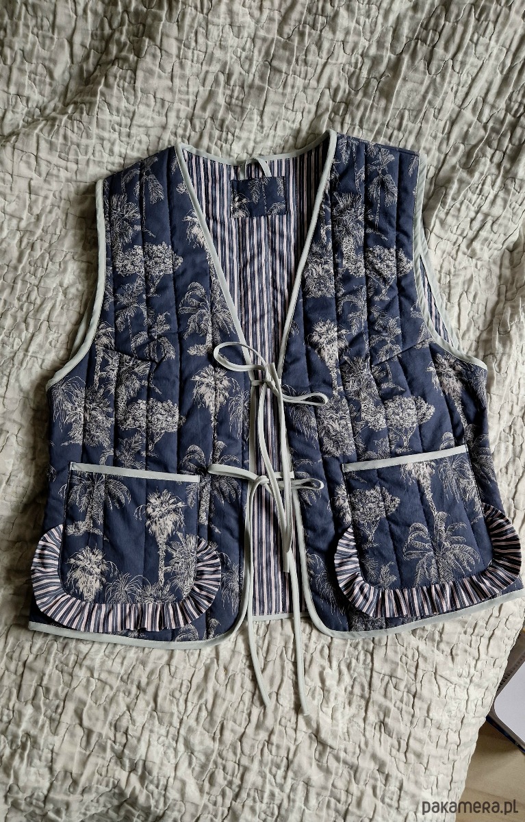 Kamizelka pikowana upcyklingowa damska z wiązaniem