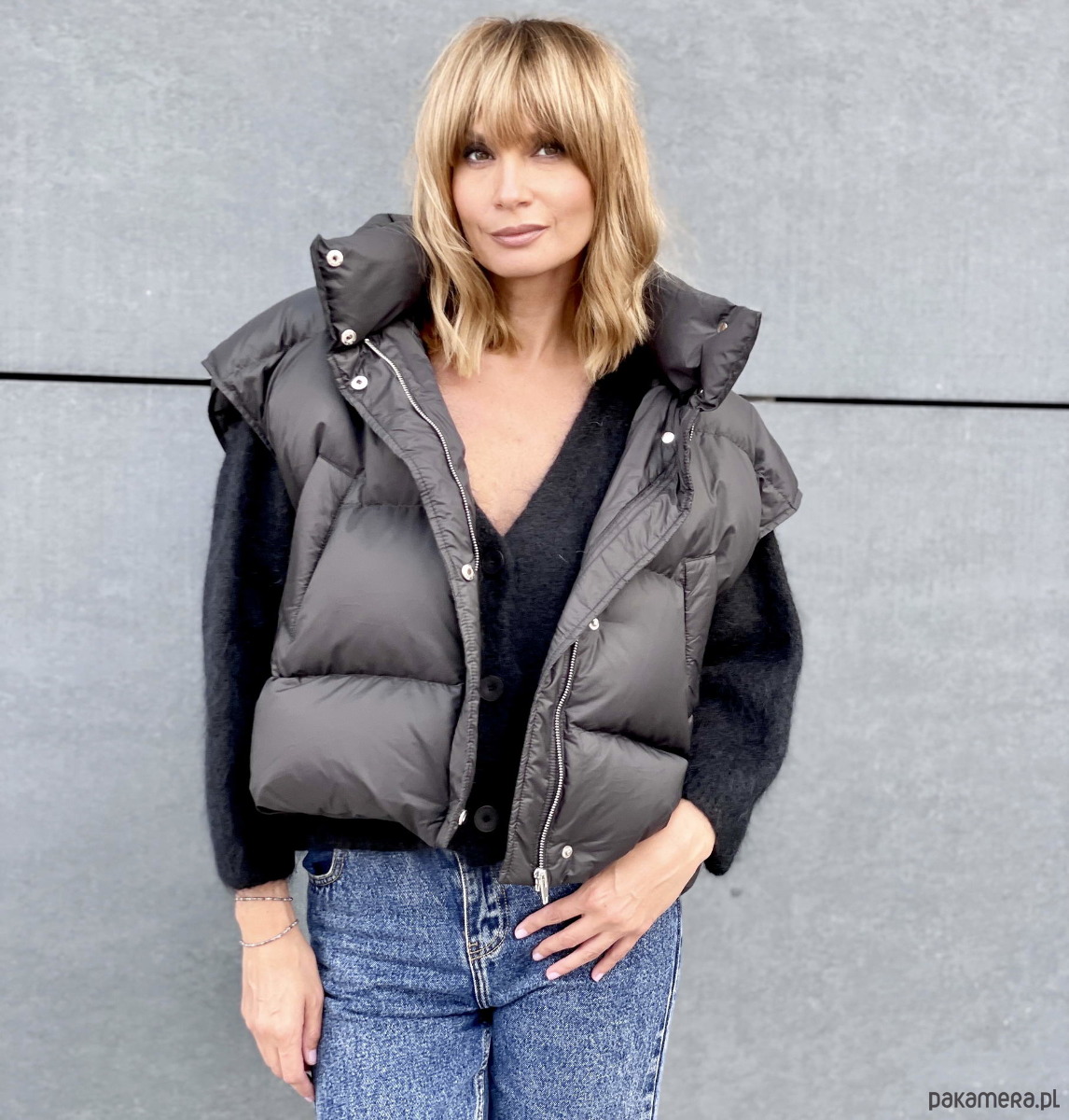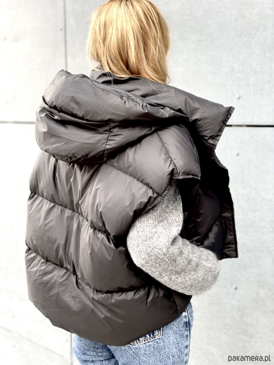 Absolutny "must have" w jesienno-zimowej garderobie, oversizowa pikowana kamizelka w kolorze czarnym, wypełniona puchem naturalnym, stanowi nie tylko modowe wykończenie Waszych stylizacji ale również zapewnia dodatkowe źródło ciepła