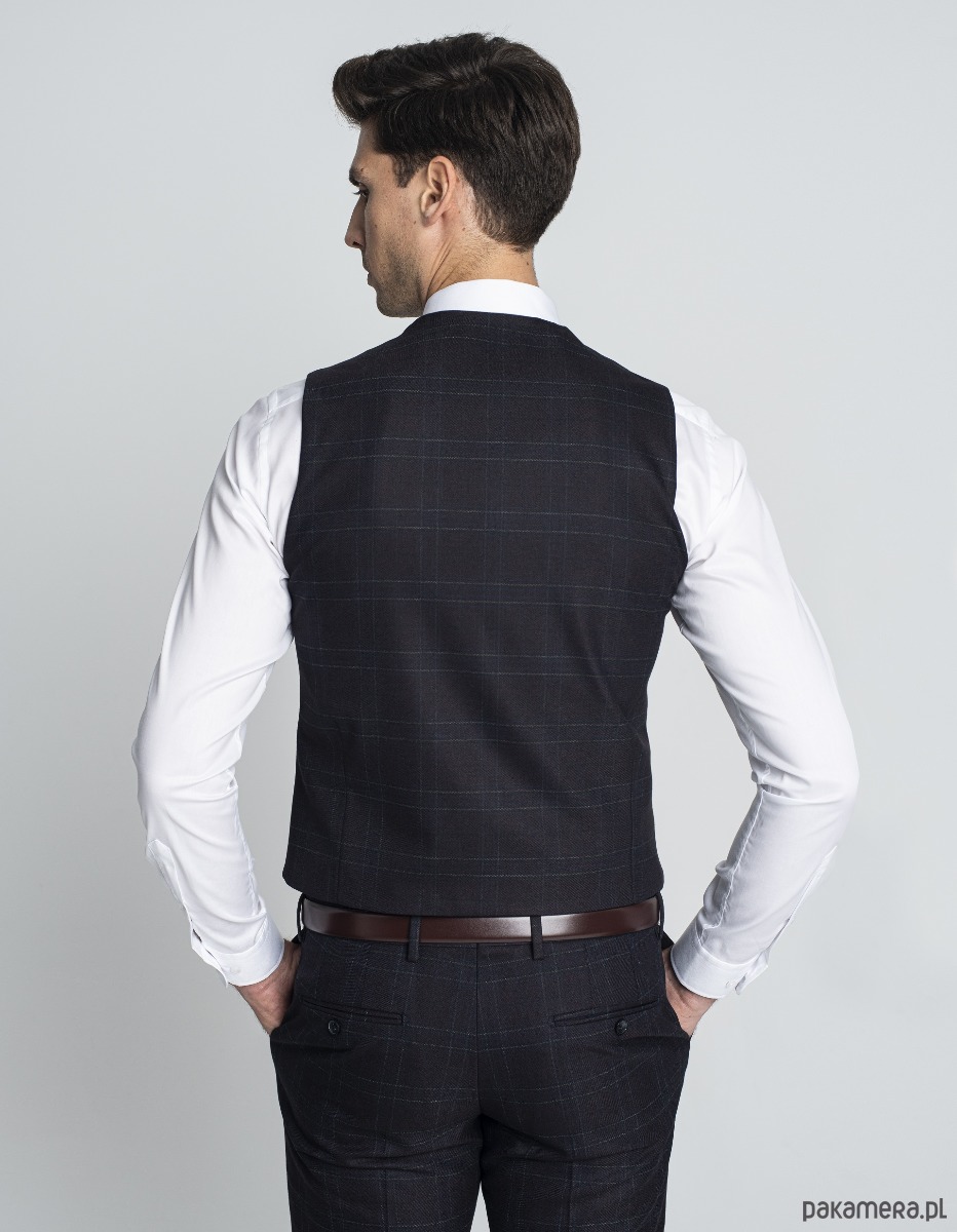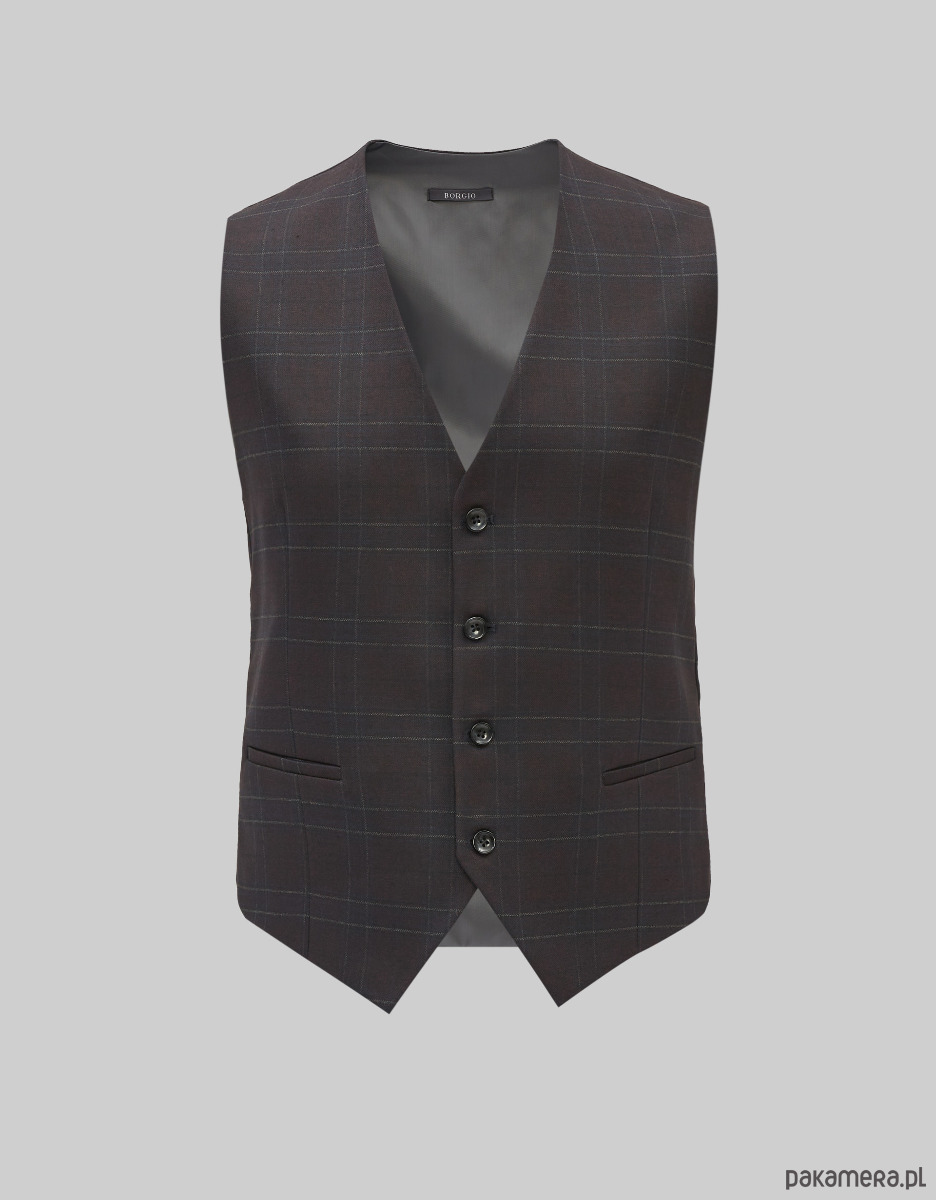 Kamizelka w kratę monreale bordowa slim fit 54