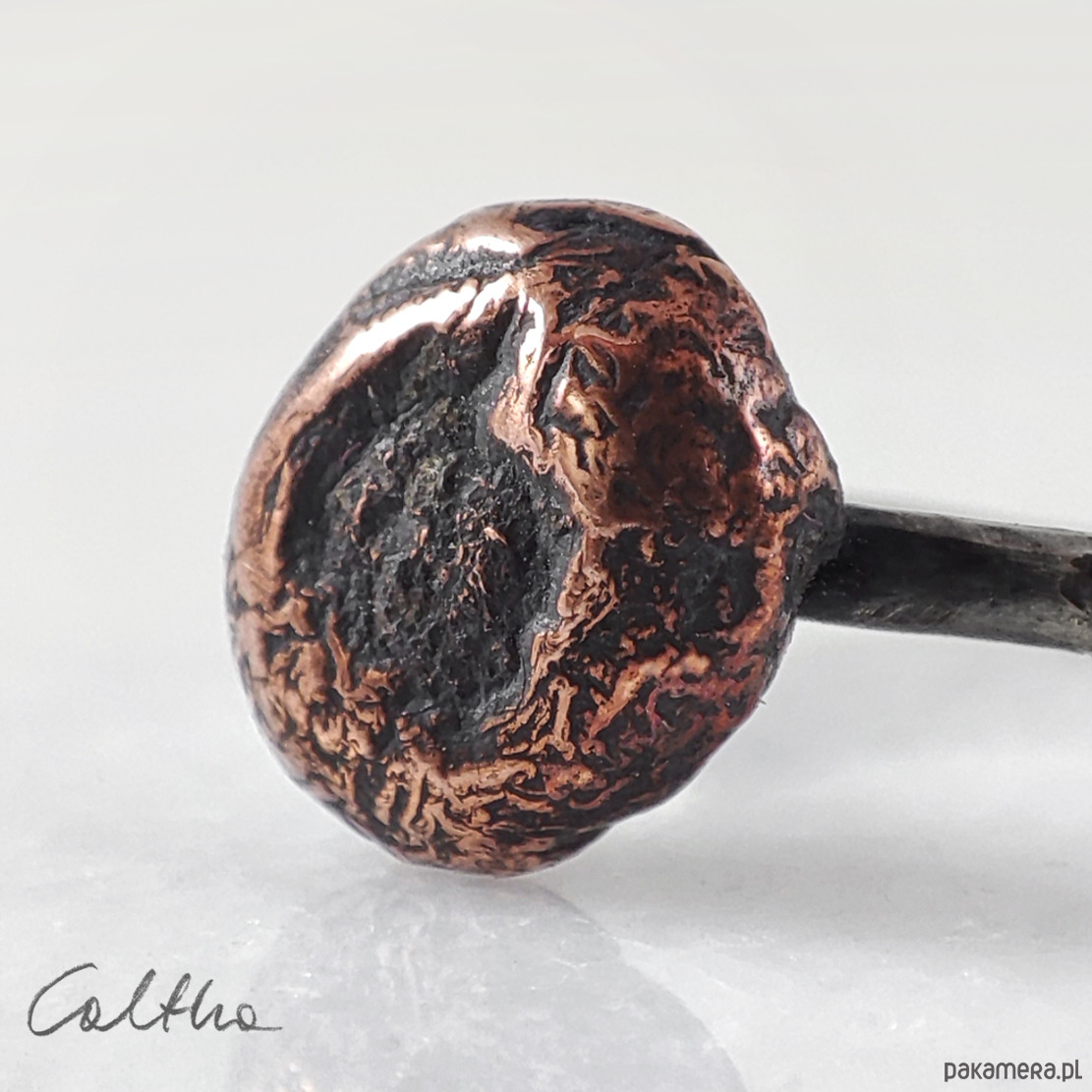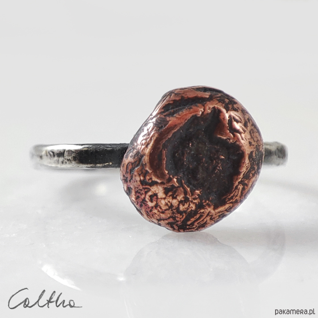 Kamyk - rozm. 10 - srebrny pierścionek z miedzianym oczkiem - unikat