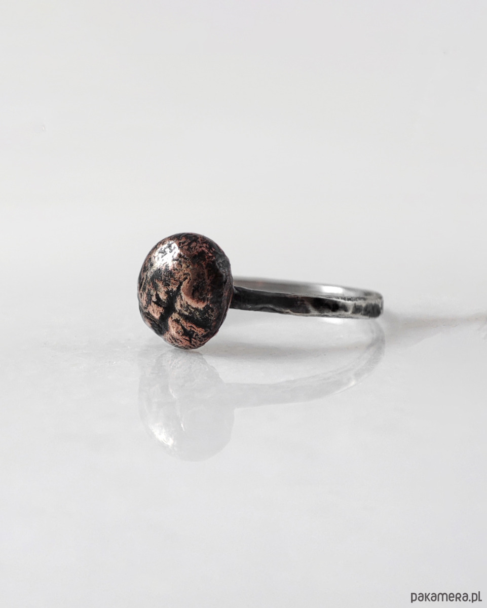 Kamyk - rozm. 18 - srebrny pierścionek z miedzianym oczkiem - unikat