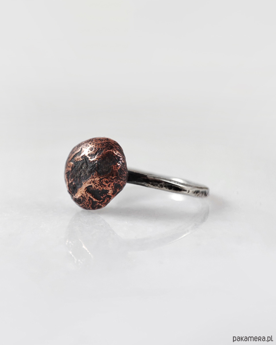 Kamyk - rozm. 8 - srebrny pierścionek z miedzianym oczkiem - unikat