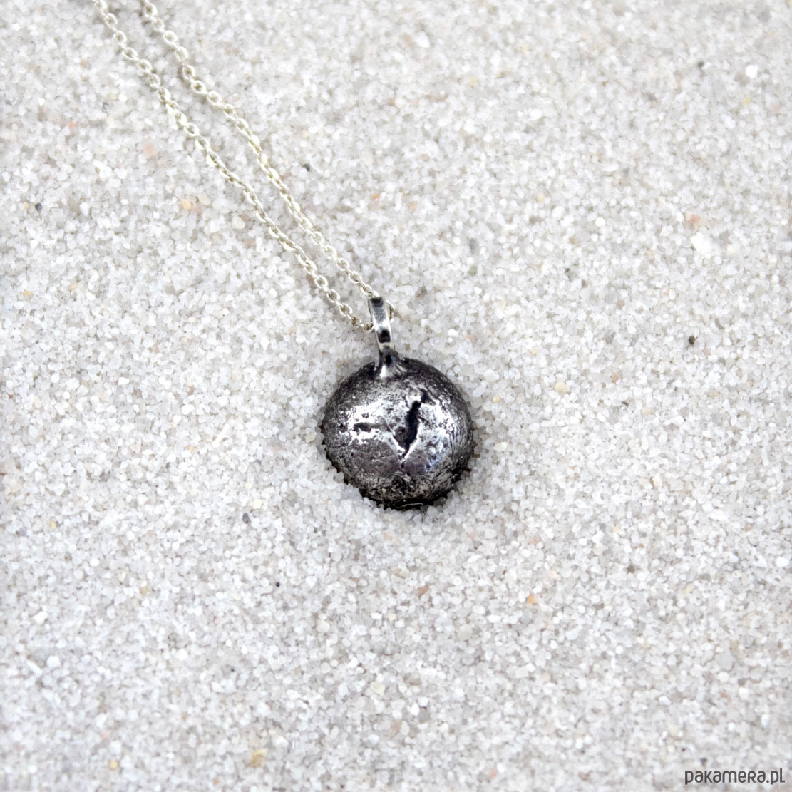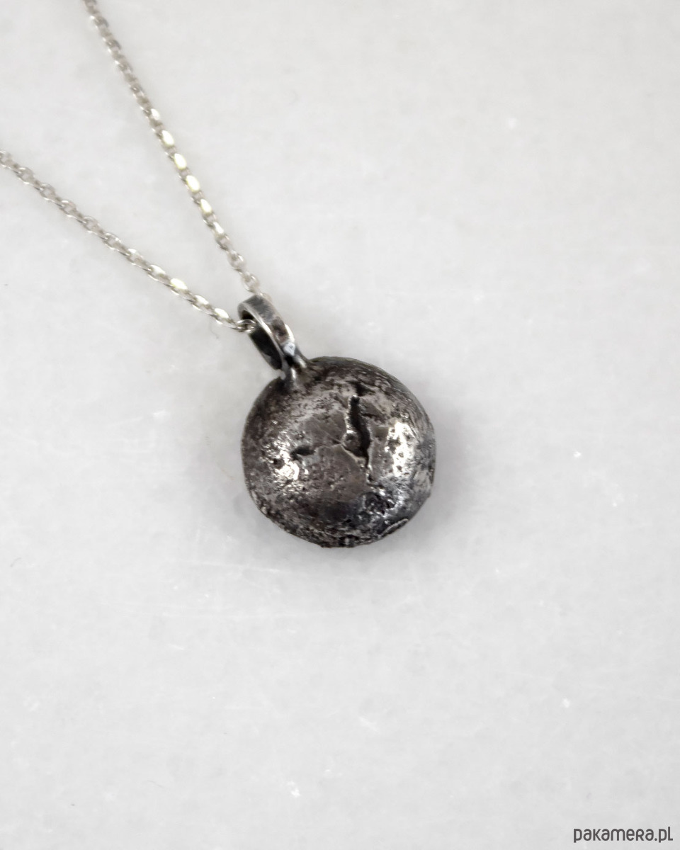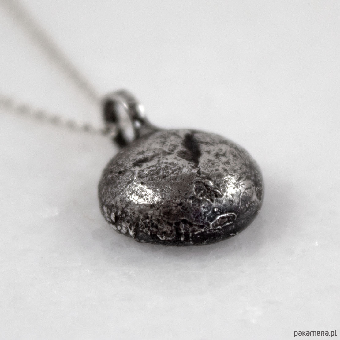 Wisior został wykonany ręcznie ze srebra próby 925, jest lekko patynowany w procesie oksydacji (bez użycia sztucznych barwników). Całkowita długość wisiorka to ok 1,5 cm. W komplecie srebrny łańcuszek do zawieszenia.