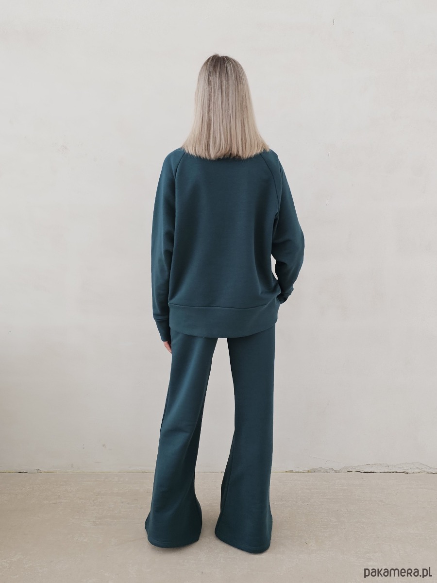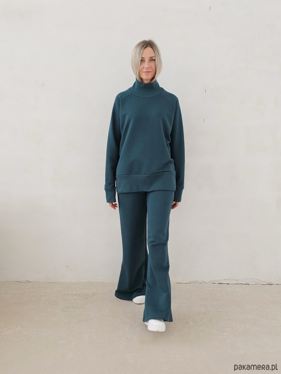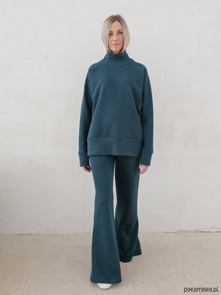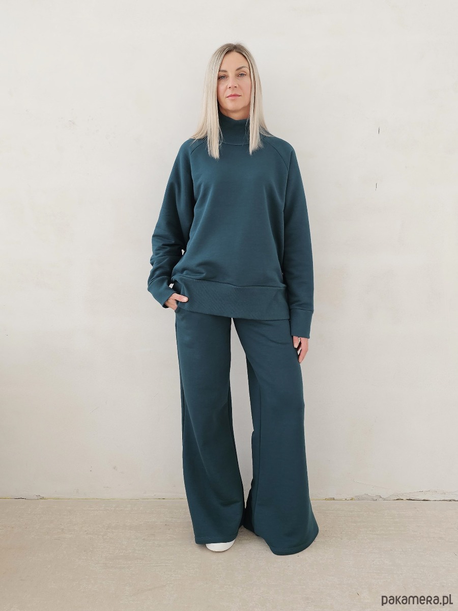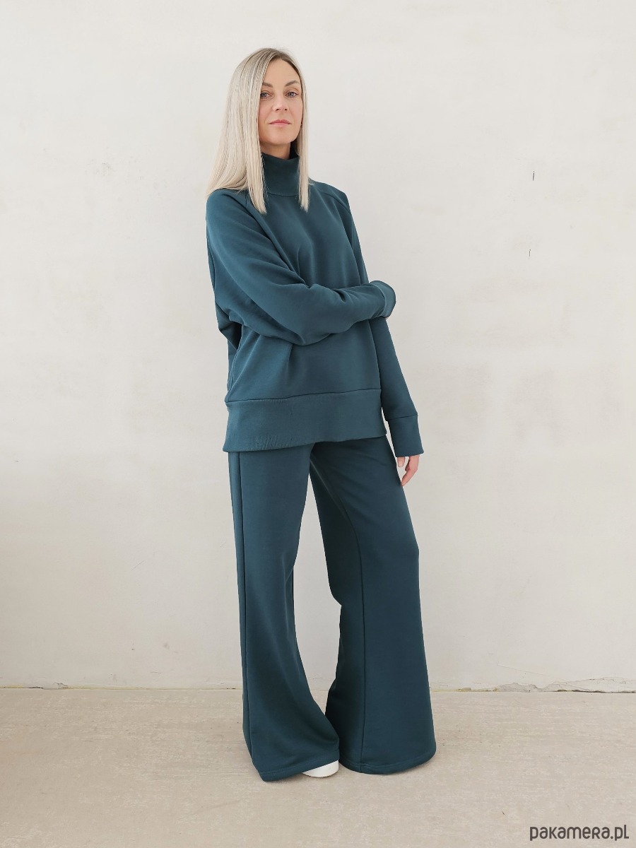 Kanani komplet spodnie dzwony i bluza z golfem butelkowy zielony