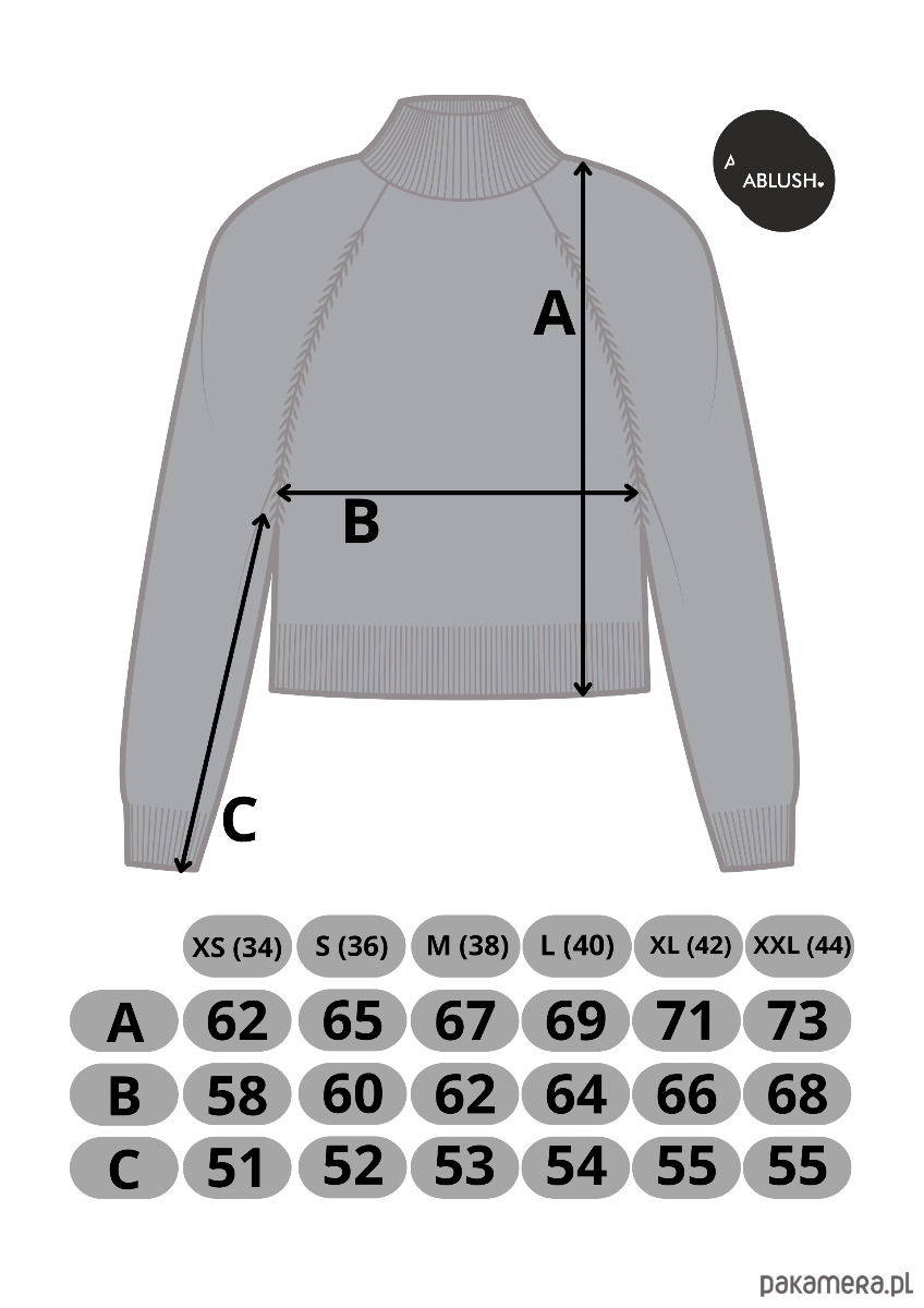 WYMIARY I DOPASOWANIE- Modelka ma 164cm wzrostu i prezentuje rozmiar S. Szczegółowe wymiary podane są w tabeli, którą znajdziesz w galerii tego produktu- ostatnie zdjęcia.